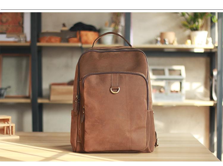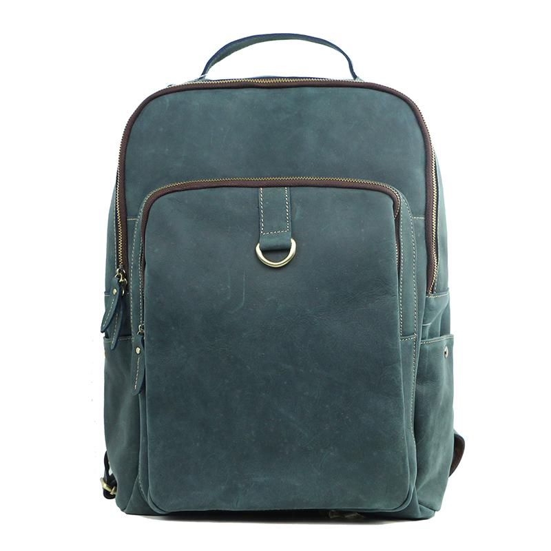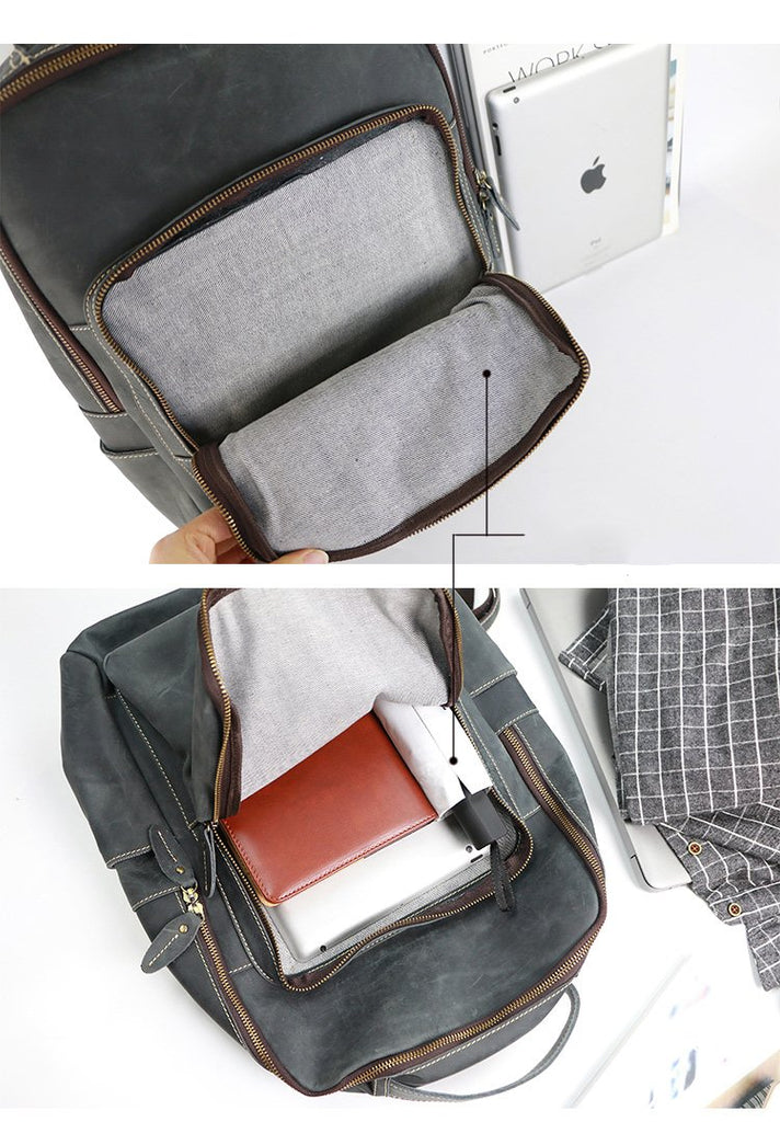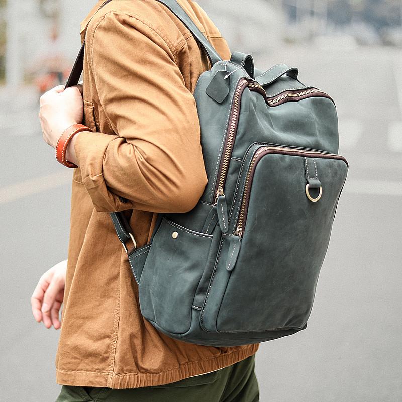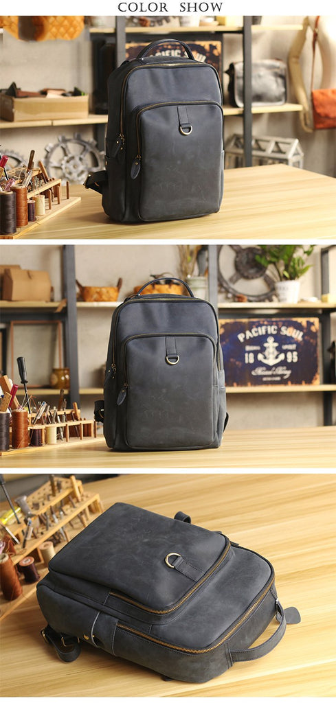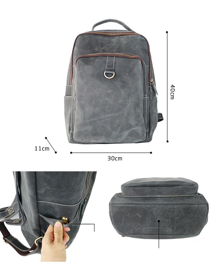 Design: Cool Black Leather Mens Travel Backpack Work Handbags 14 inches Work Backpack For Men