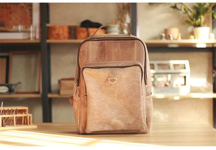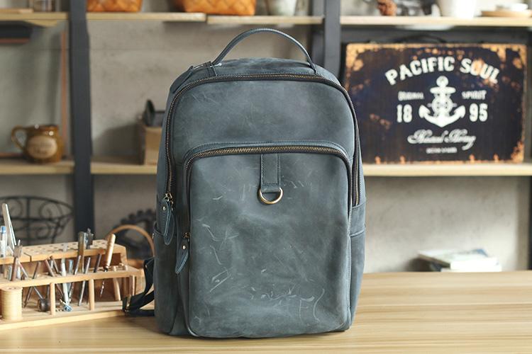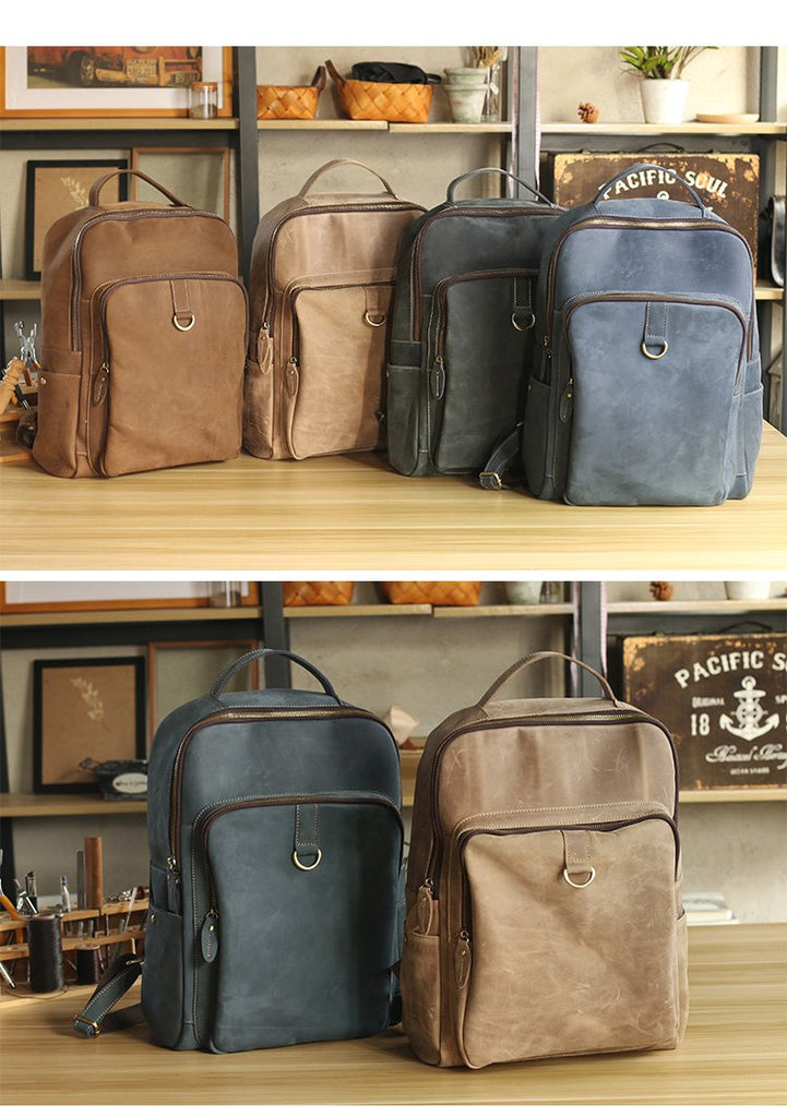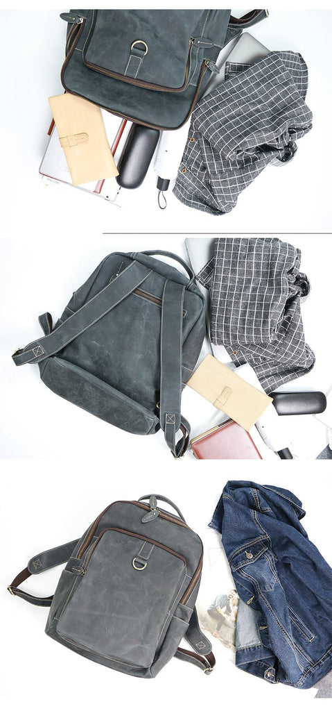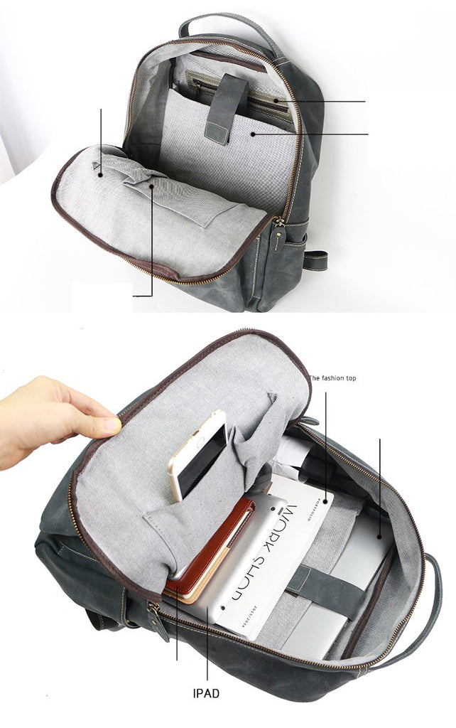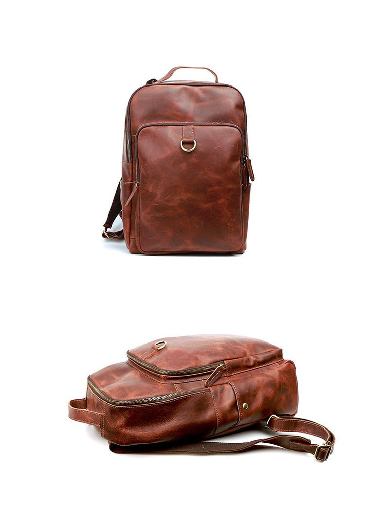 Design: Cool Black Leather Mens Travel Backpack Work Handbags 14 inches Work Backpack For Men