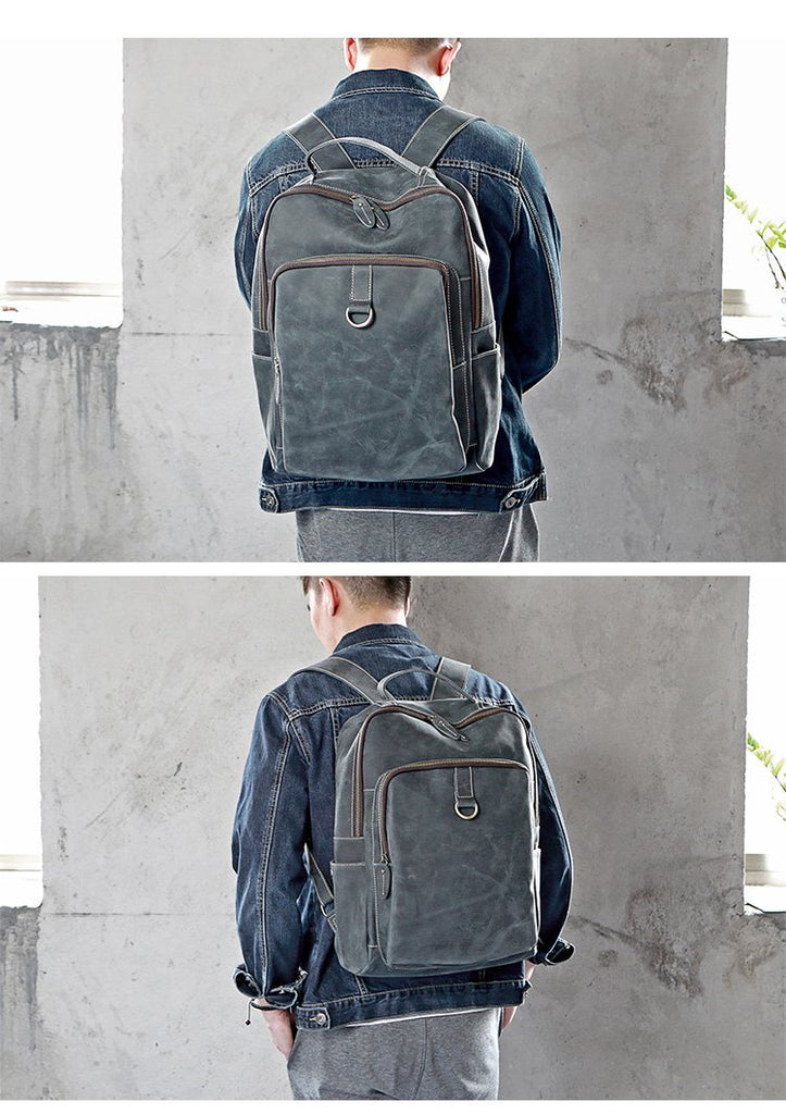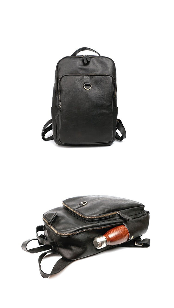 Style: Cool Black Leather Mens Travel Backpack Work Handbags 14 inches Work Backpack For Men