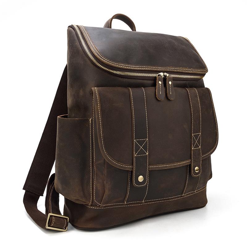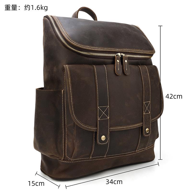 Design: Cool Brown Mens Leather 15 inches Large School Backpack Dark Brown Travel Backpack for Men
