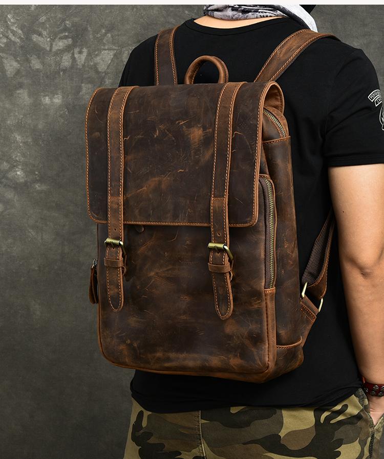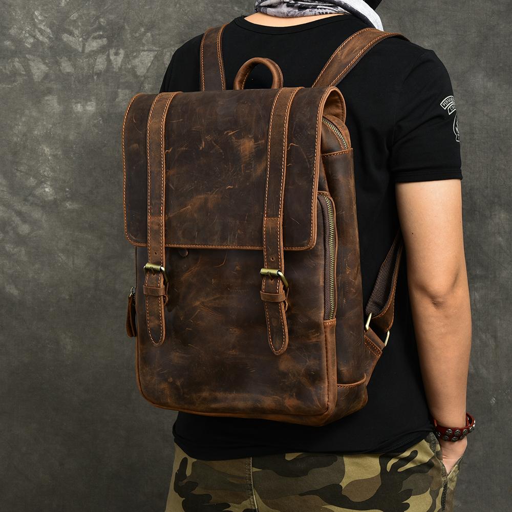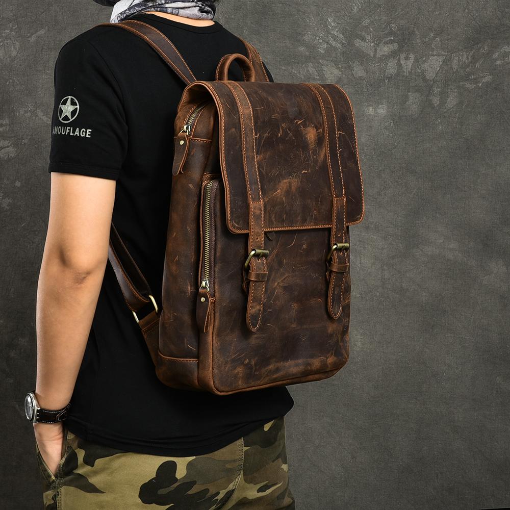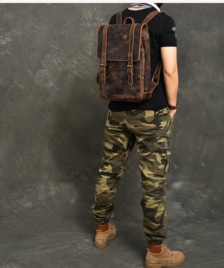 Style: Cool Canvas Leather Mens 14" Dark Brown Hiking Backpack Travel Backpack College Backpack for Men