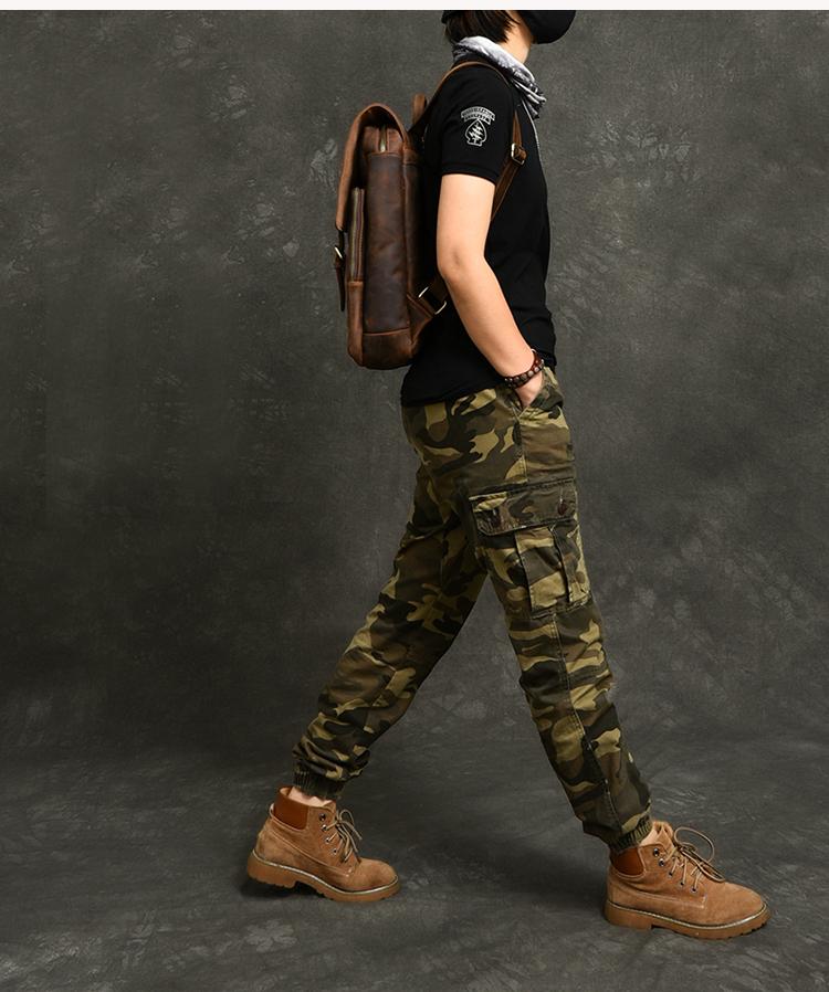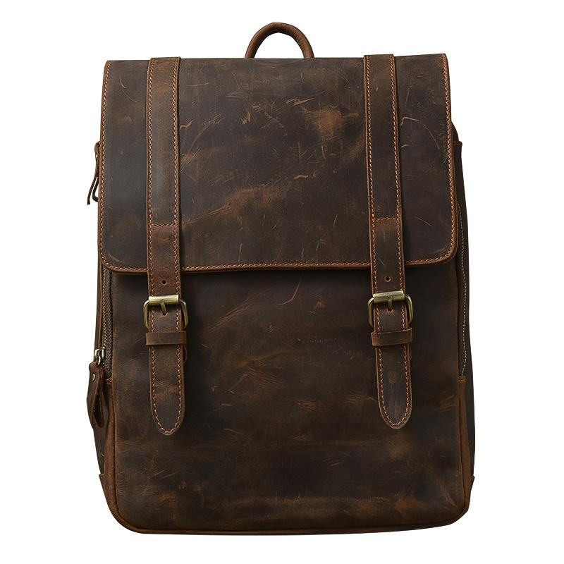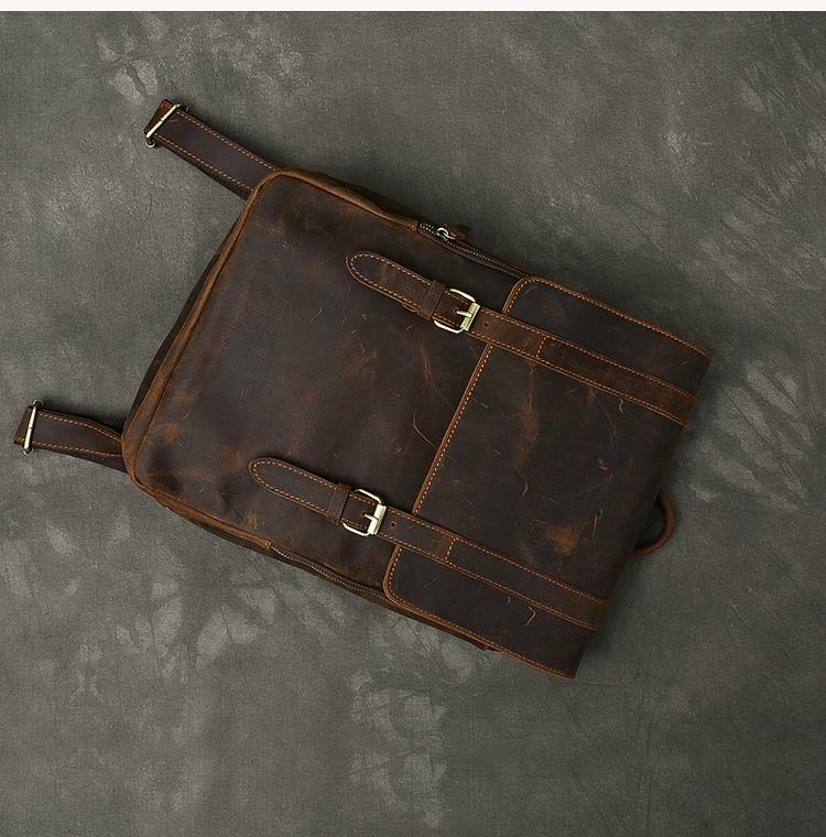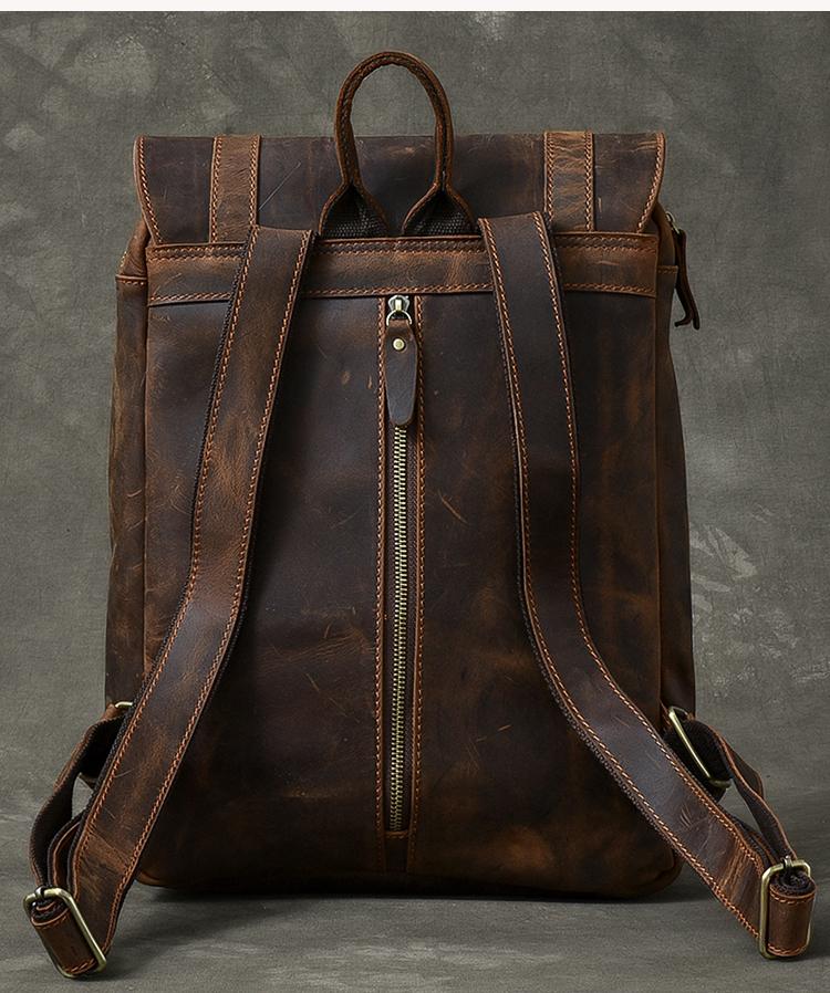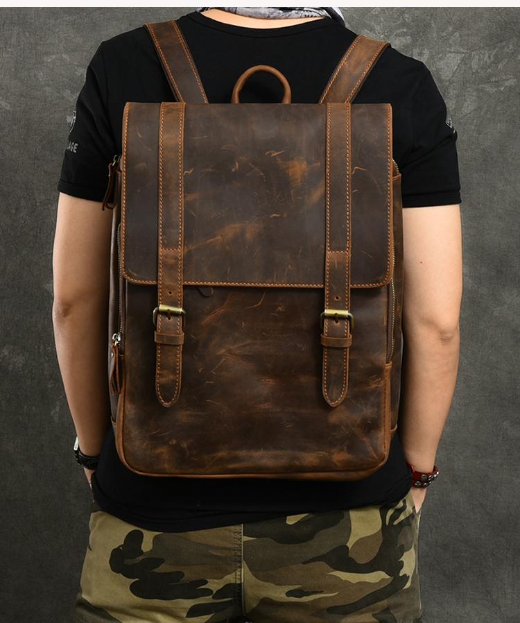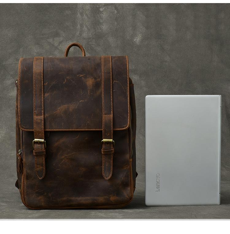 Style: Cool Canvas Leather Mens 14" Dark Brown Hiking Backpack Travel Backpack College Backpack for Men