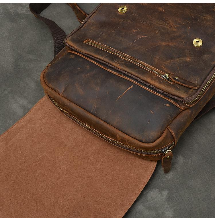 Design: Cool Canvas Leather Mens 14" Dark Brown Hiking Backpack Travel Backpack College Backpack for Men