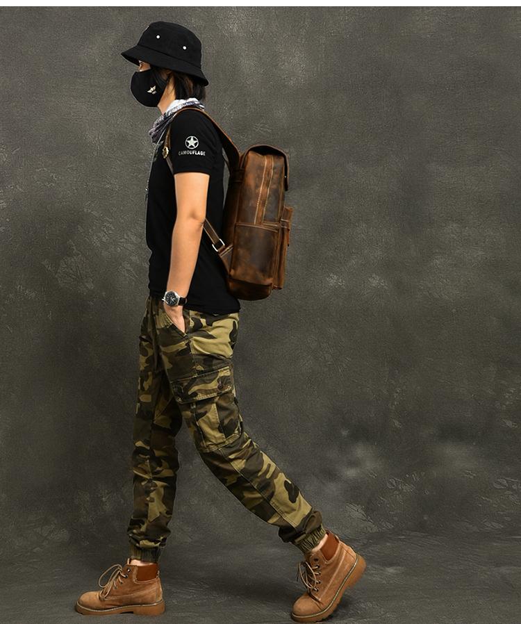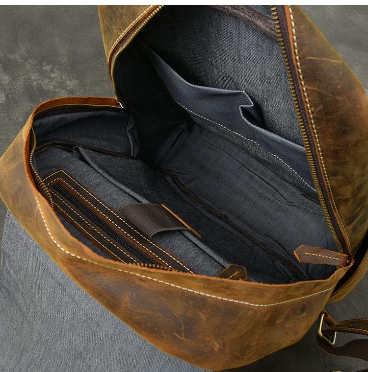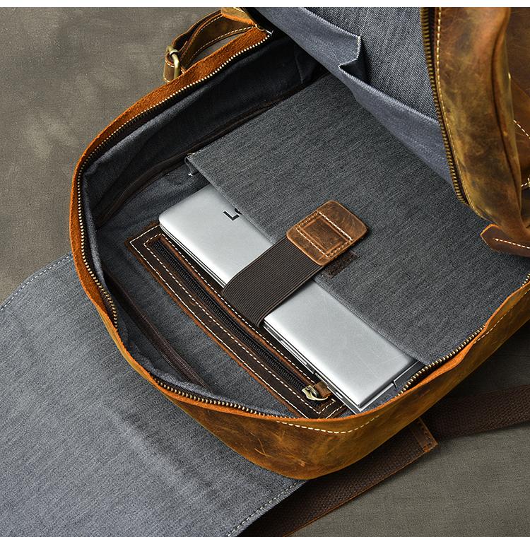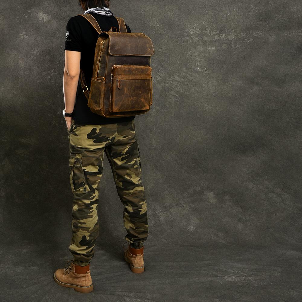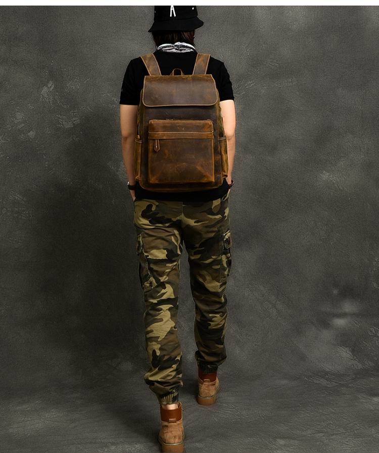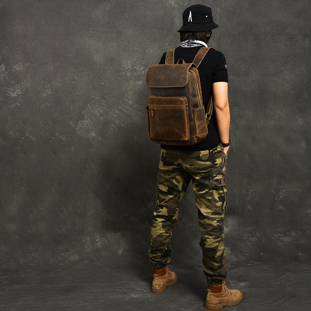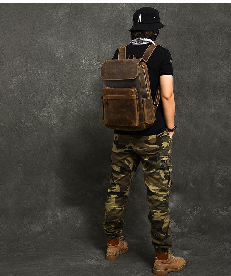 Design: Cool Canvas Leather Mens 14" Retro Brown Hiking Backpack Travel Backpack College Backpack for Men