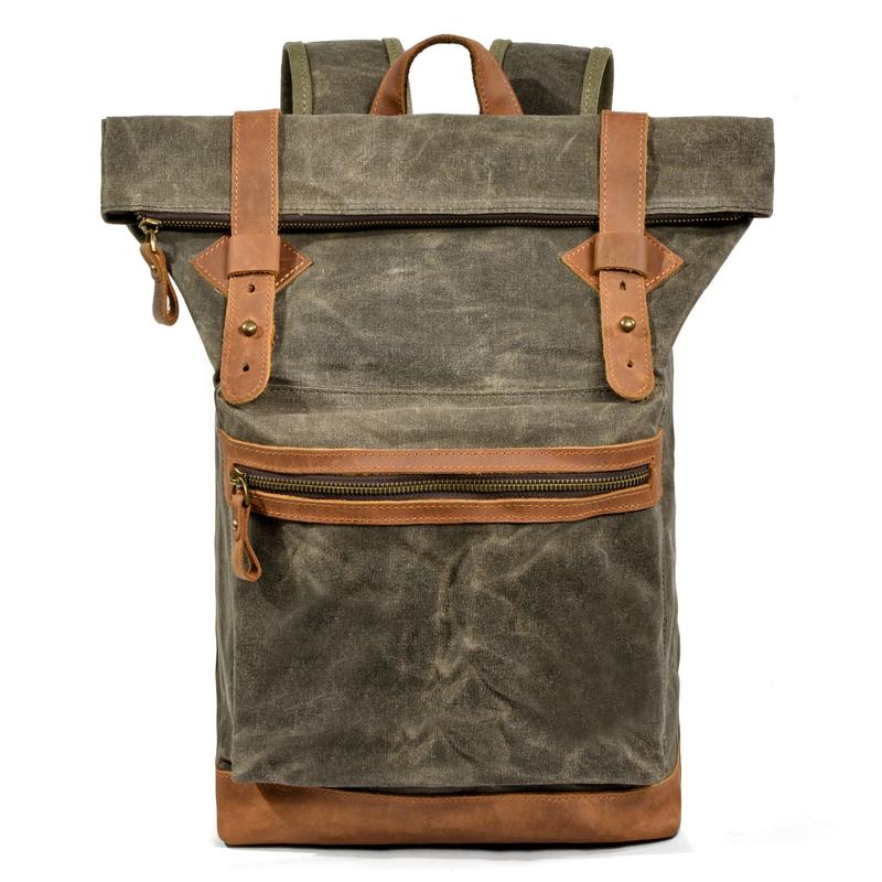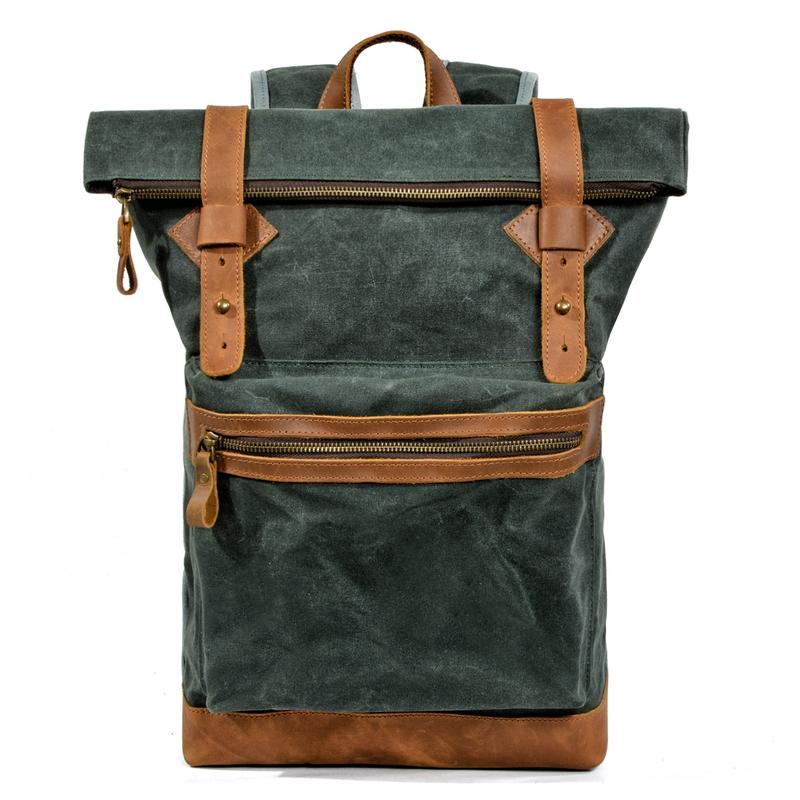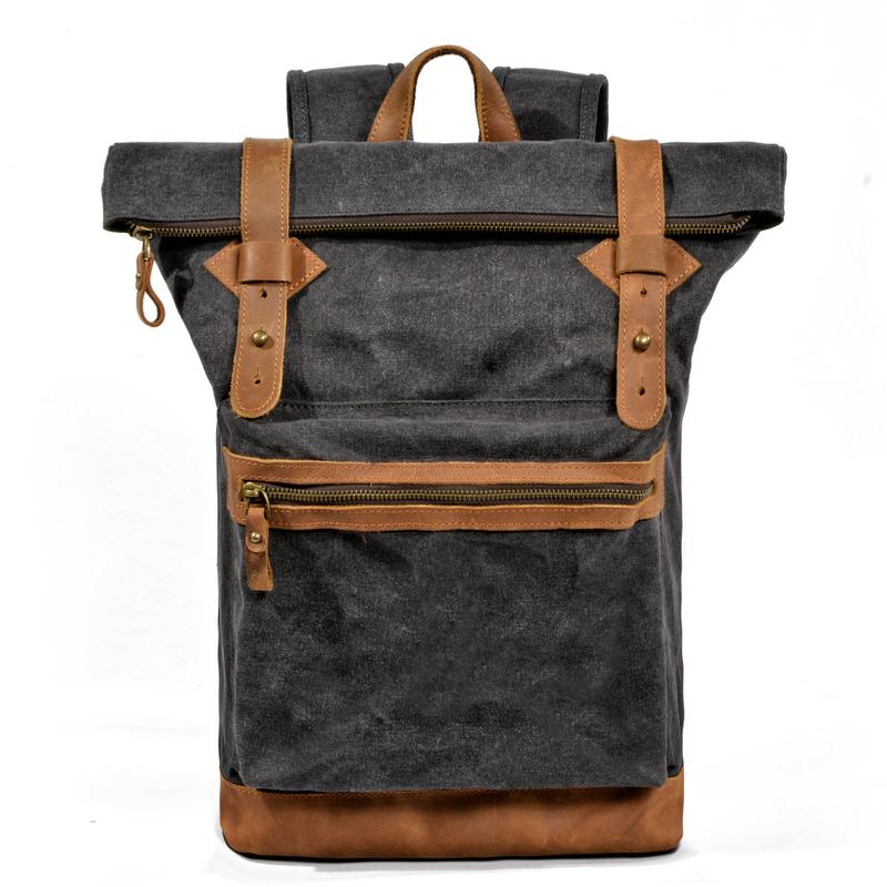 Style: Cool Canvas Leather Mens 15'' Hiking Bag Computer Backpack Travel Backpack for Men