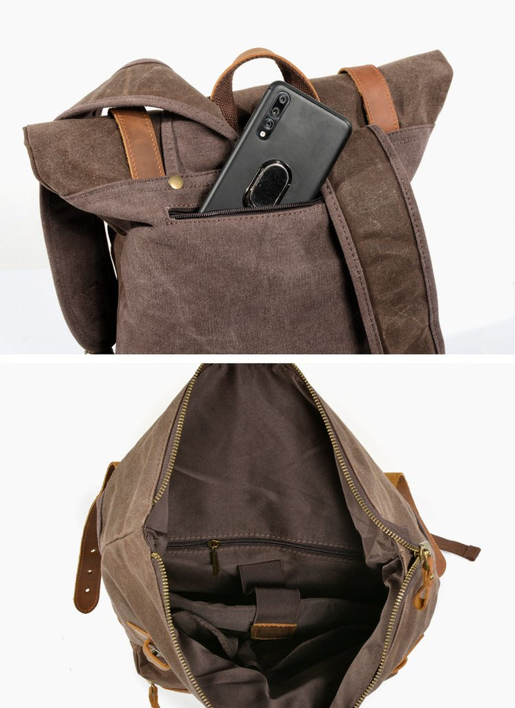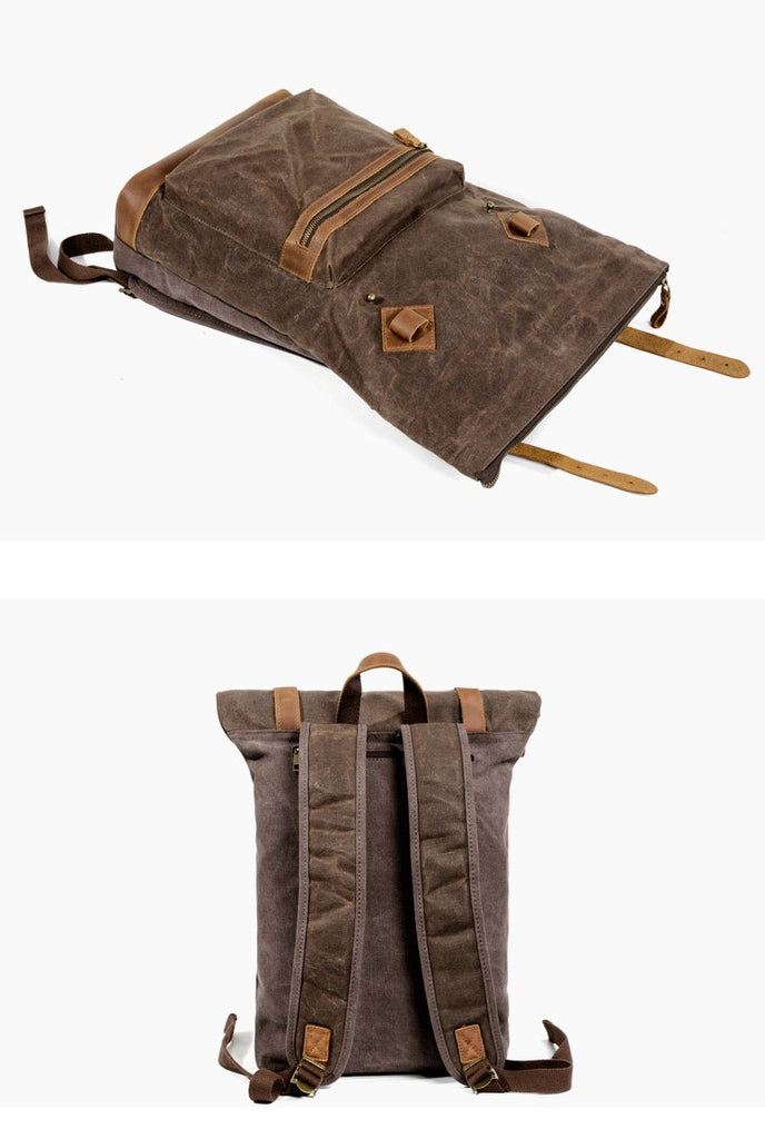 Design: Cool Canvas Leather Mens 15'' Hiking Bag Computer Backpack Travel Backpack for Men