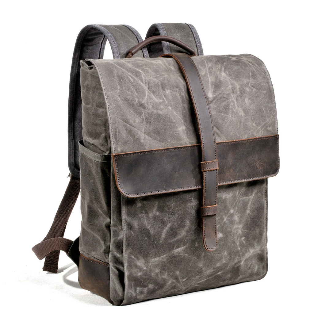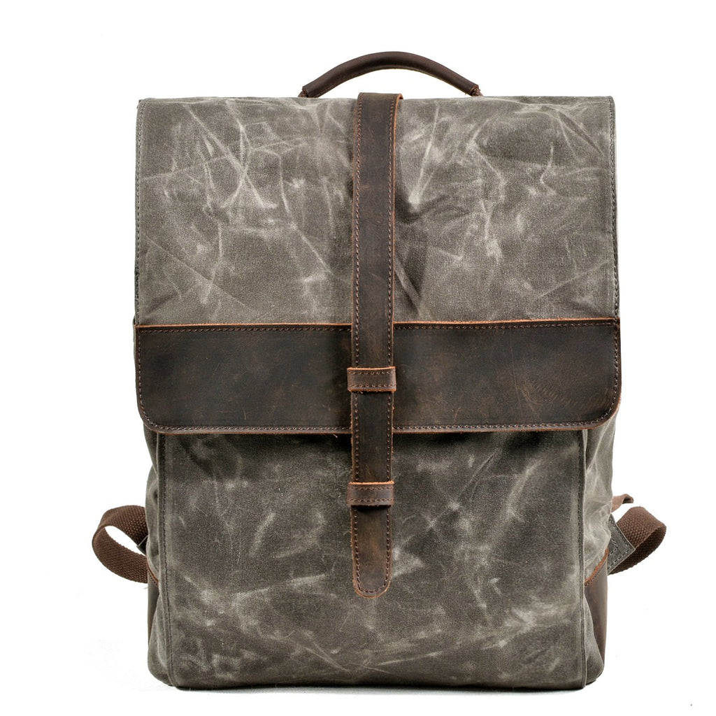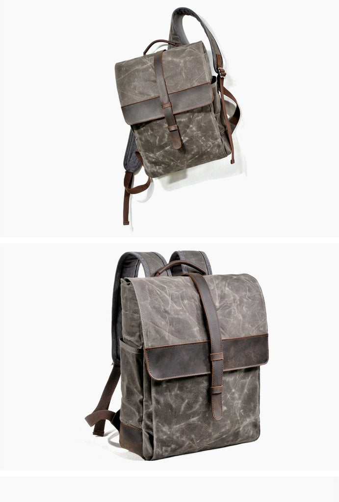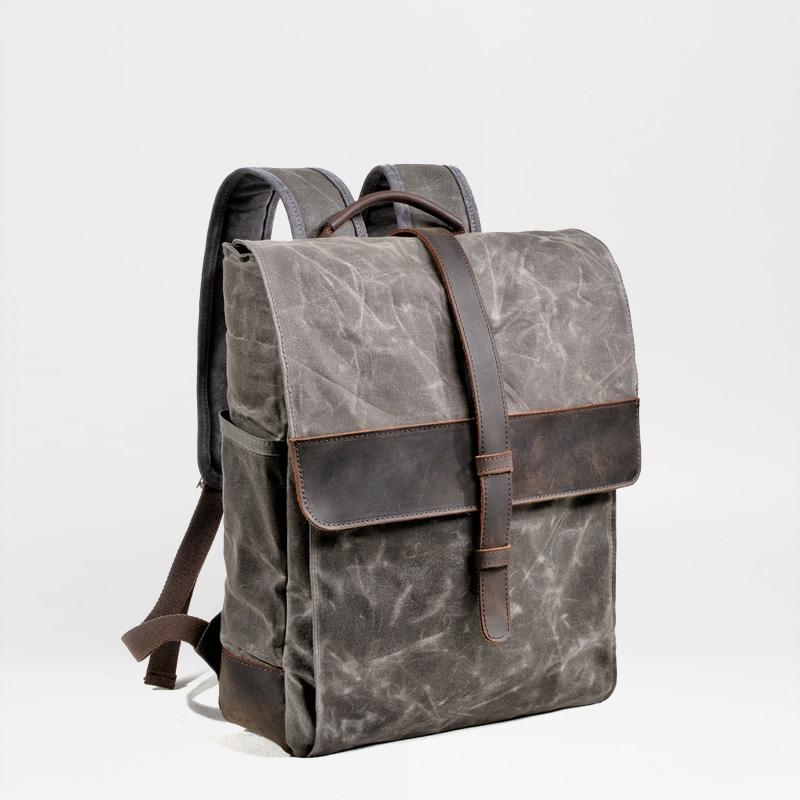 Style: Cool Canvas Leather Mens Large Waterproof Black Backpack Travel Backpack Khaki Computer Backpack for Men