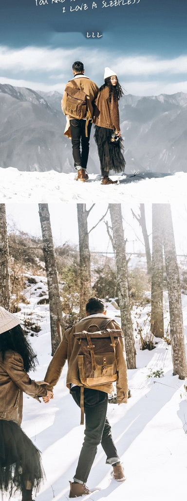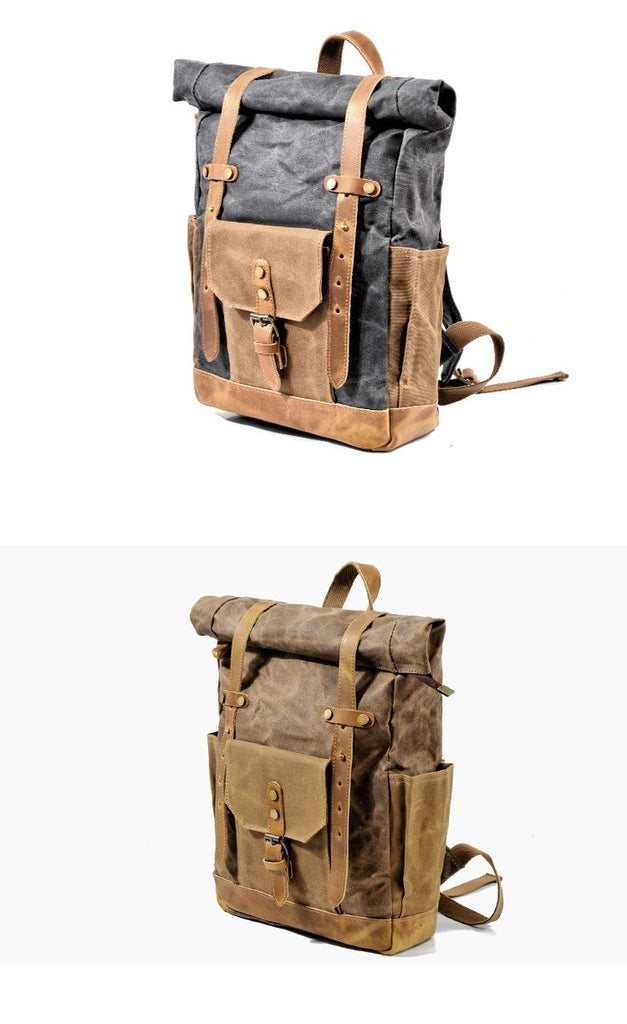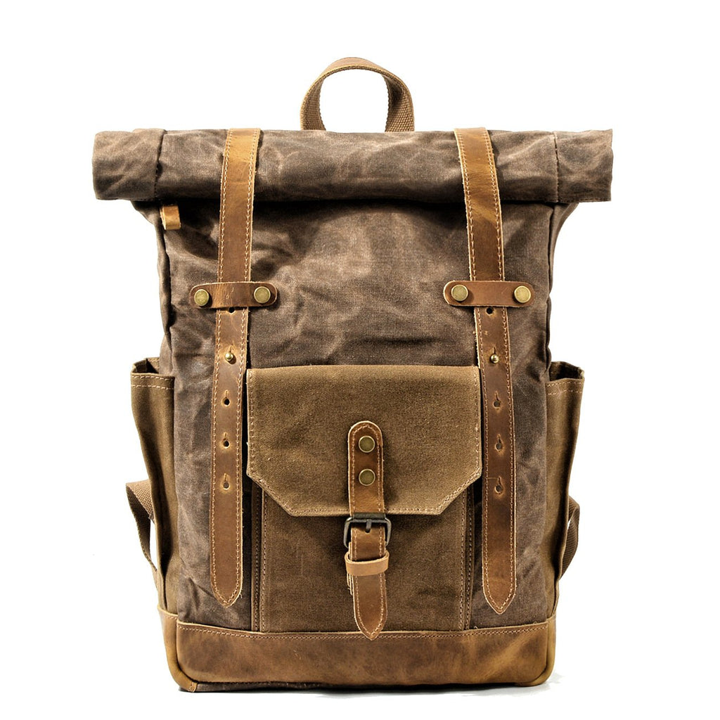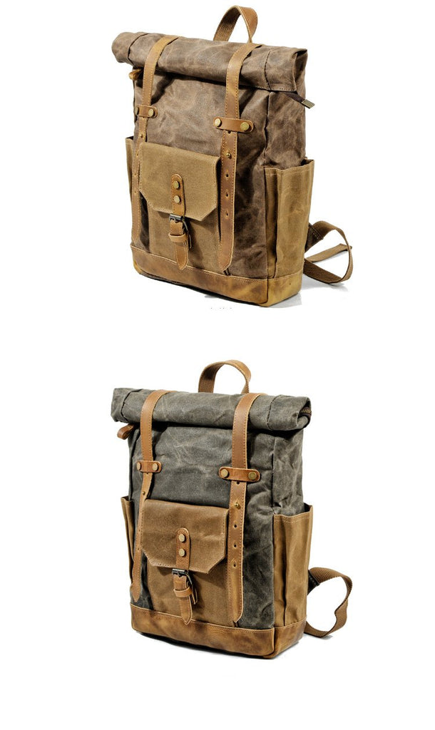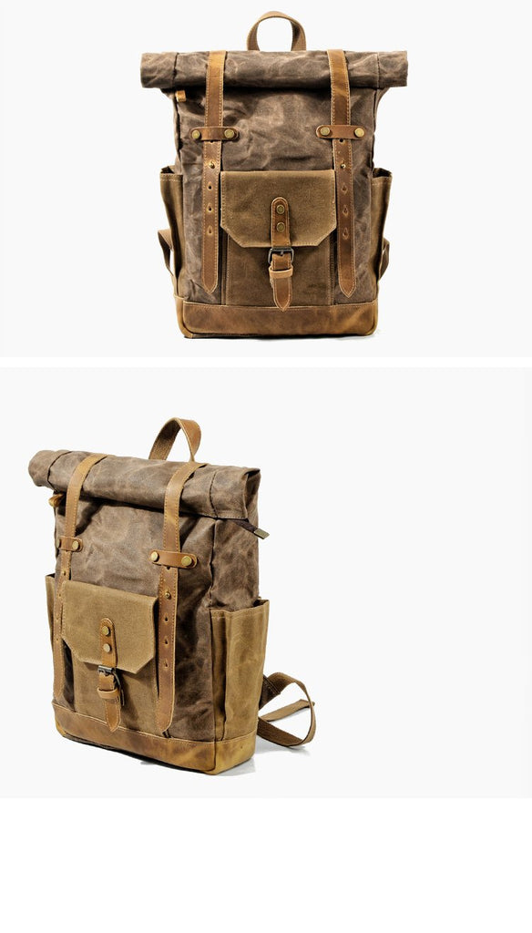 Style: Cool Canvas Leather Mens Green Large Waterproof Travel Backpack Computer Hiking Backpack for Men