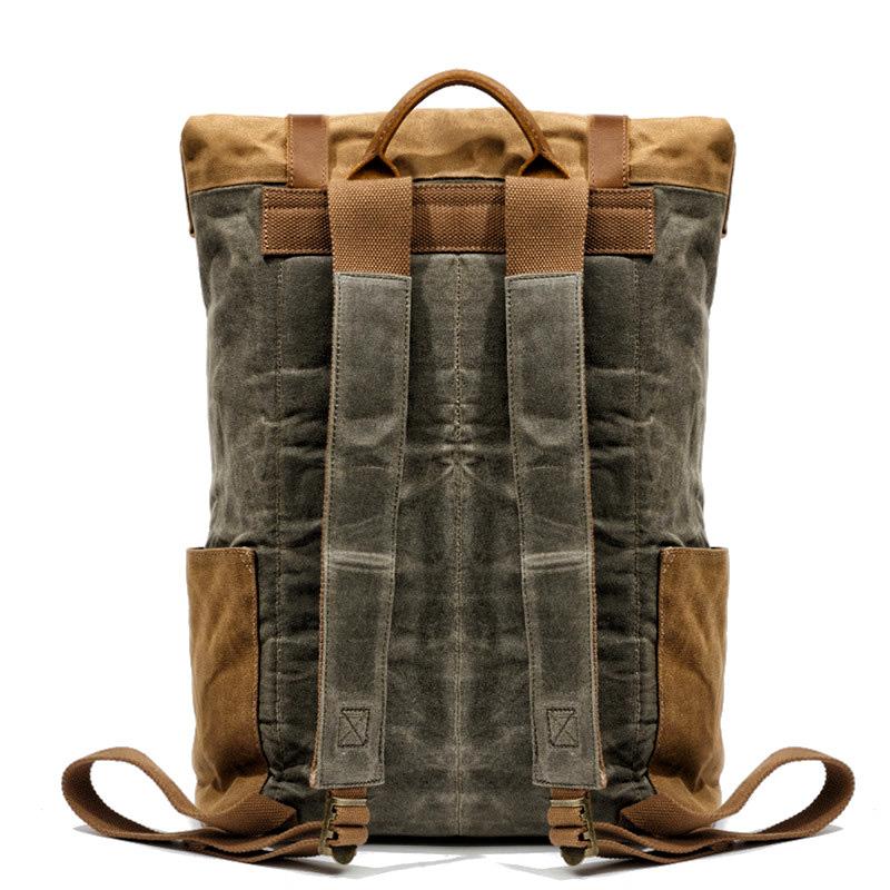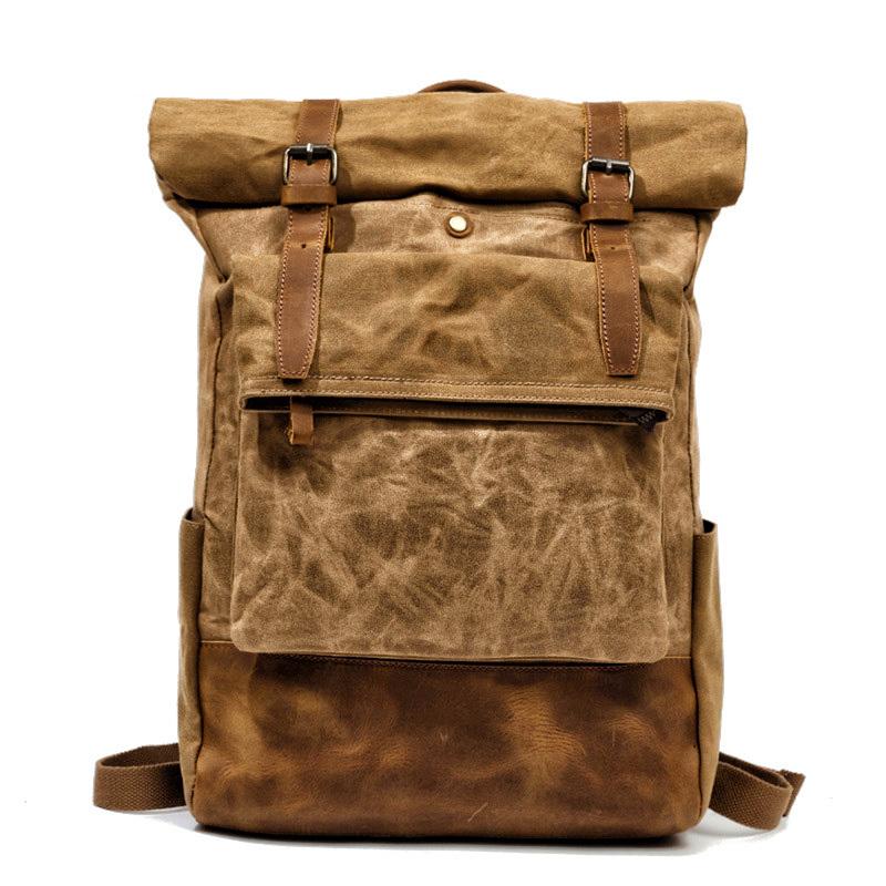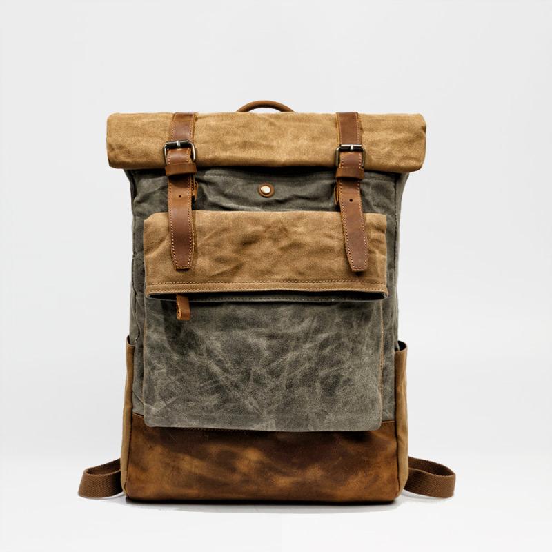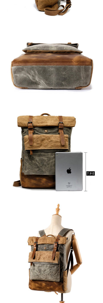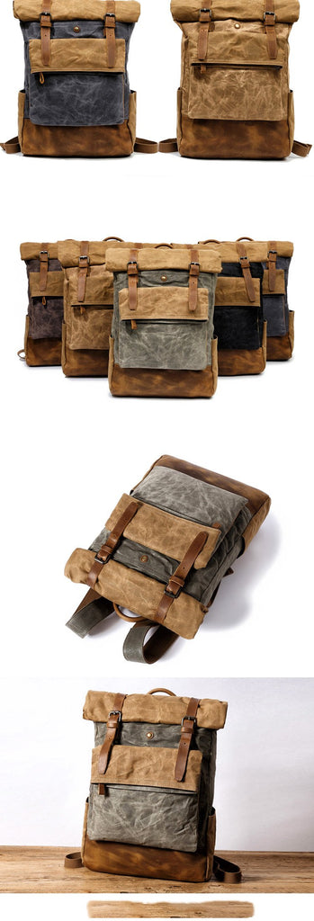 Style: Cool Canvas Leather Mens Large Waterproof Travel Backpacks Computer Hiking Backpack for Men