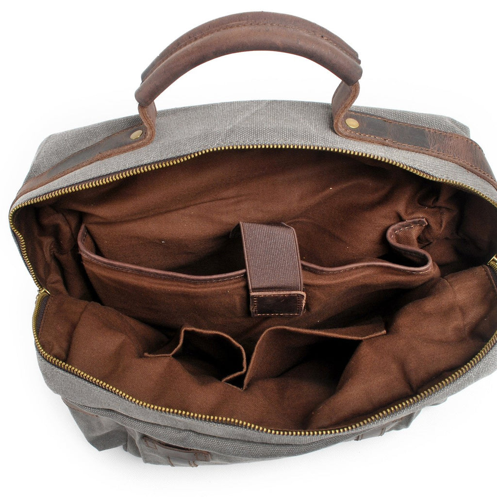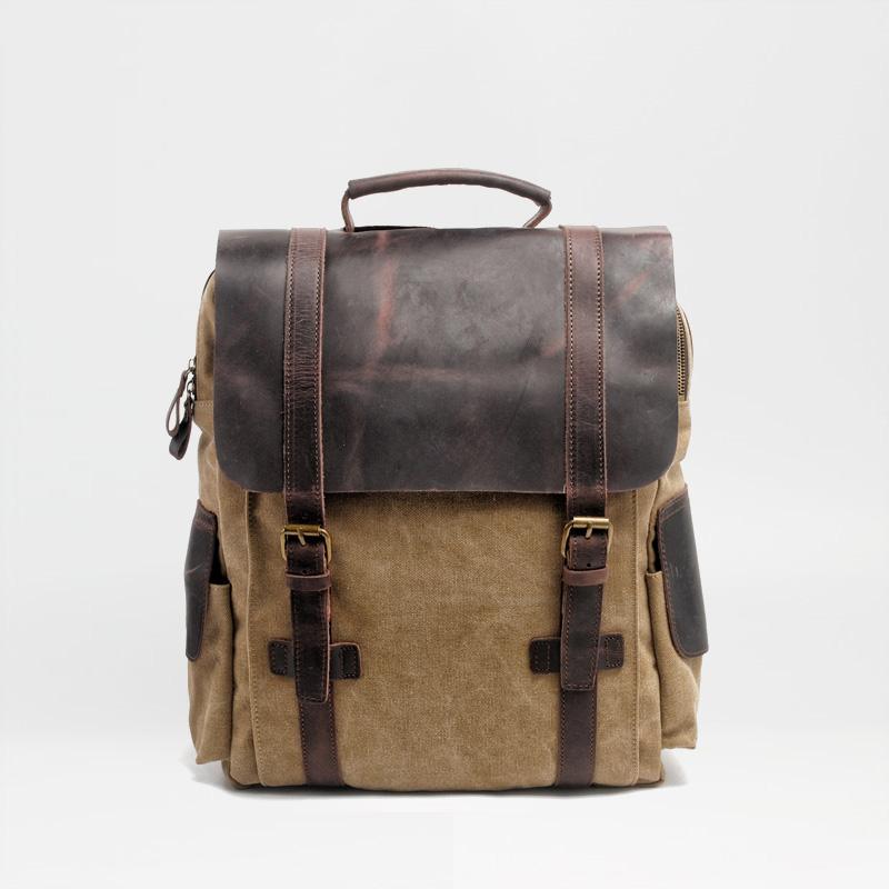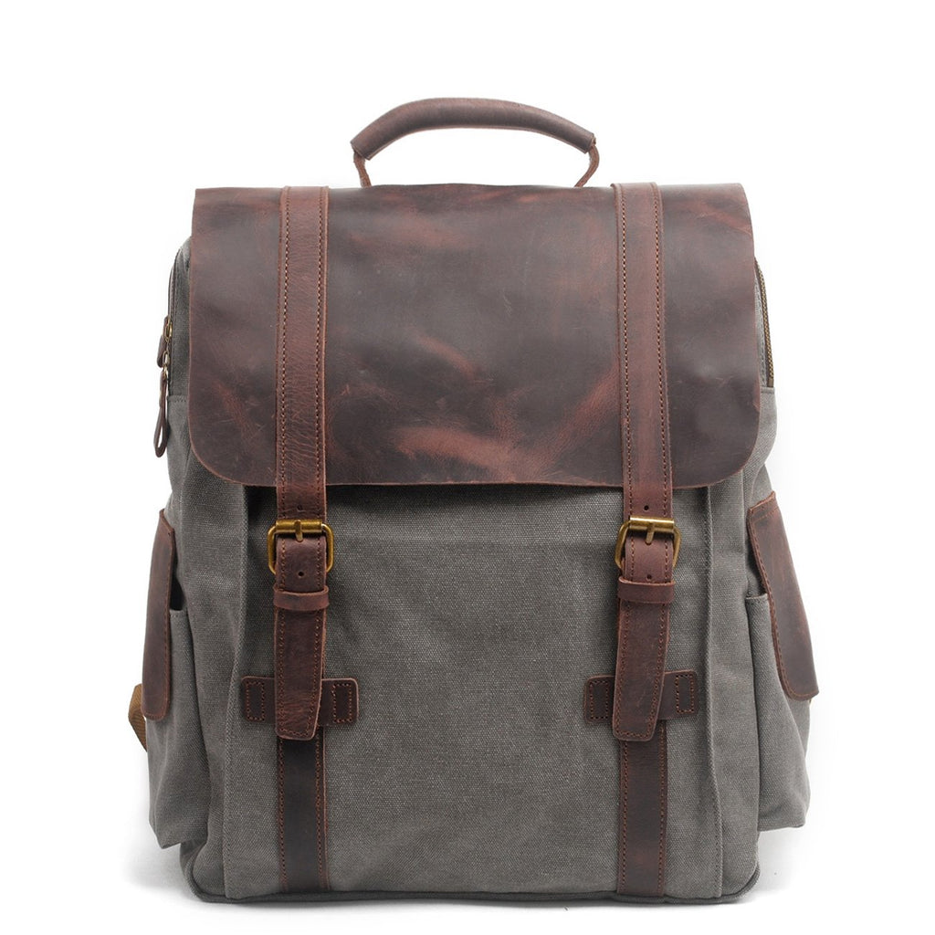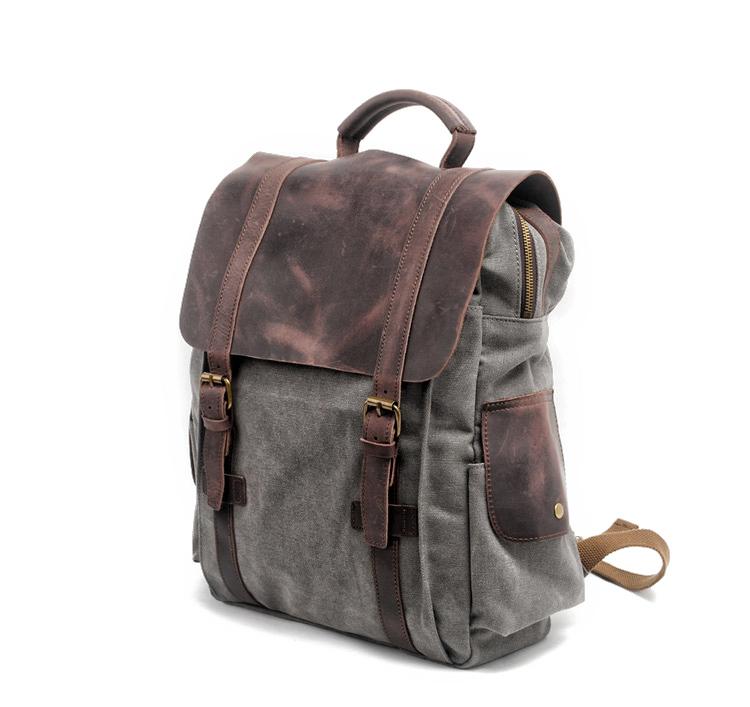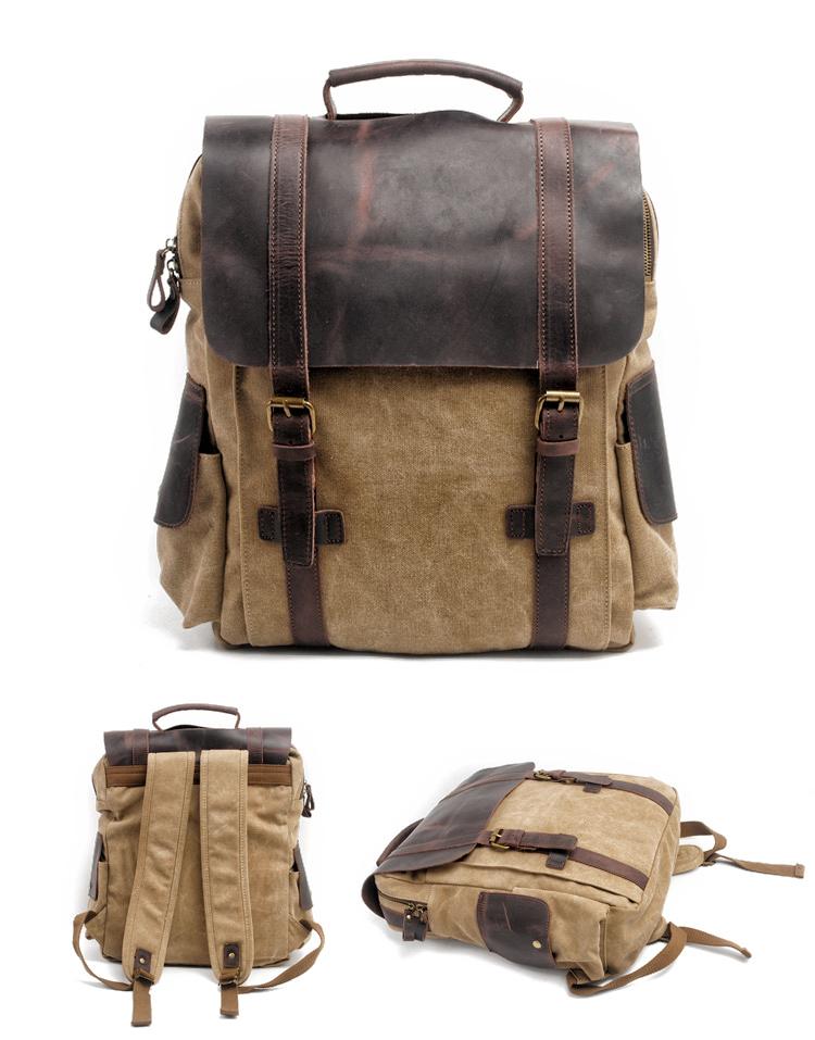 Design: Cool Canvas Leather Mens Retro College Travel Backpack Computer Hiking Backpack for Men