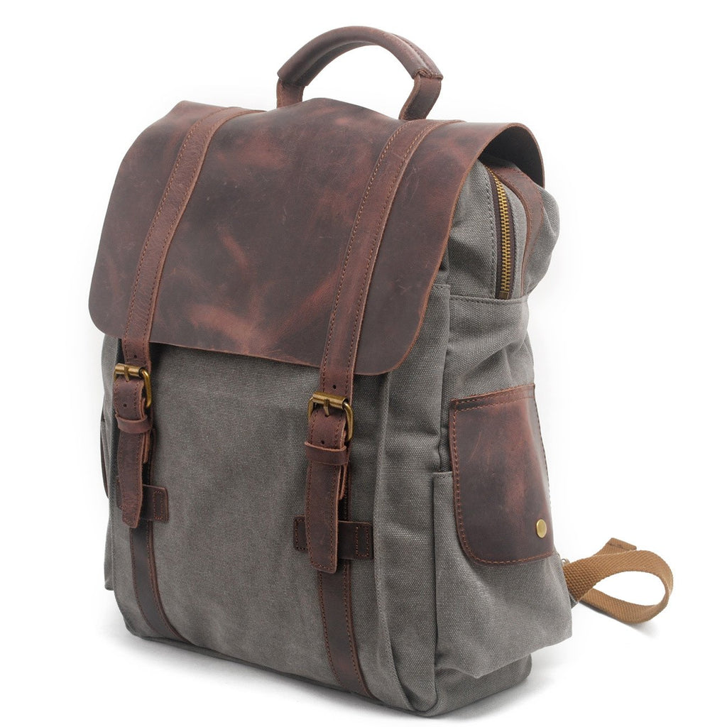 Style: Cool Canvas Leather Mens Retro College Travel Backpack Computer Hiking Backpack for Men