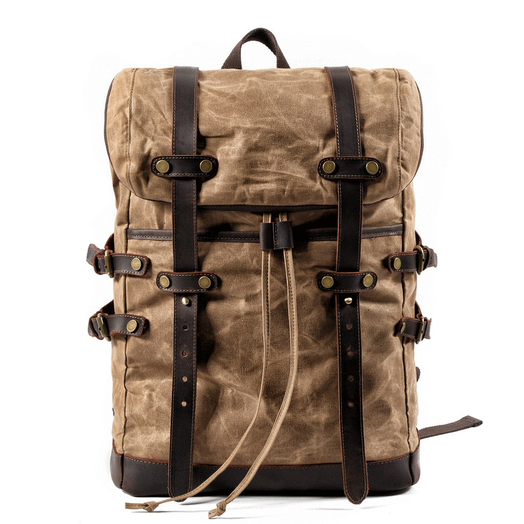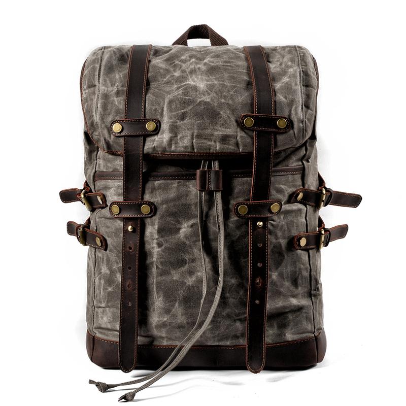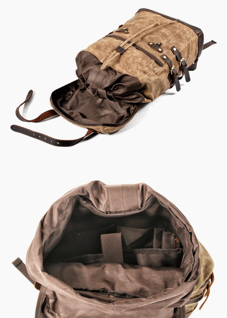 Design: Cool Waxed Canvas Leather Mens Black 15.6‘’ Large Hiking Backpack Green Travel Backpack for Men