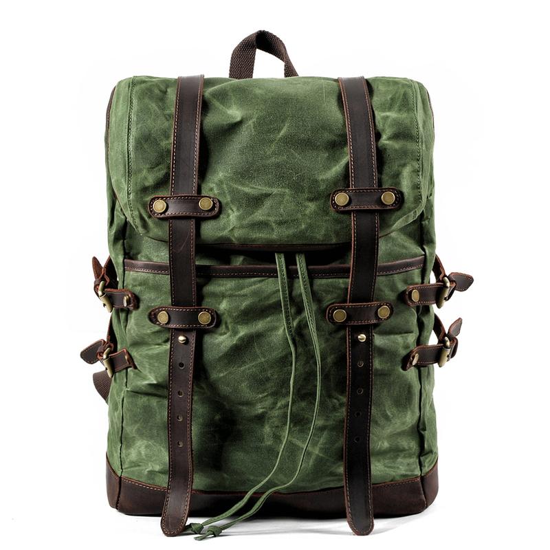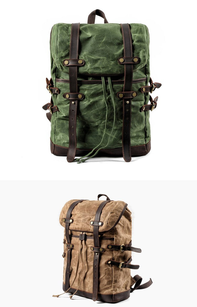 Style: Cool Waxed Canvas Leather Mens Black 15.6‘’ Large Hiking Backpack Green Travel Backpack for Men