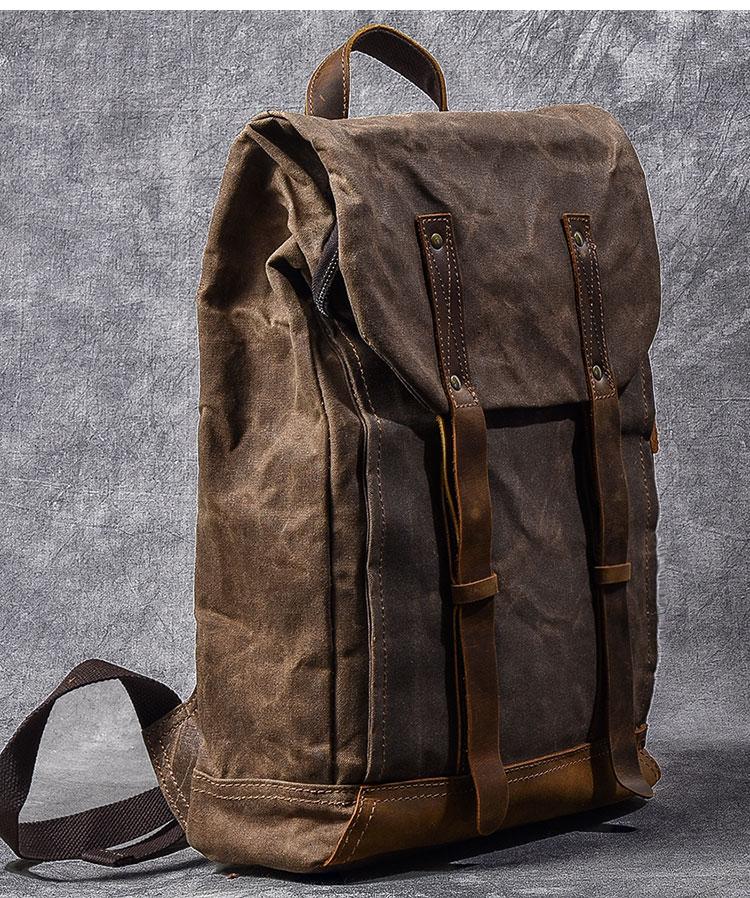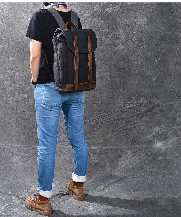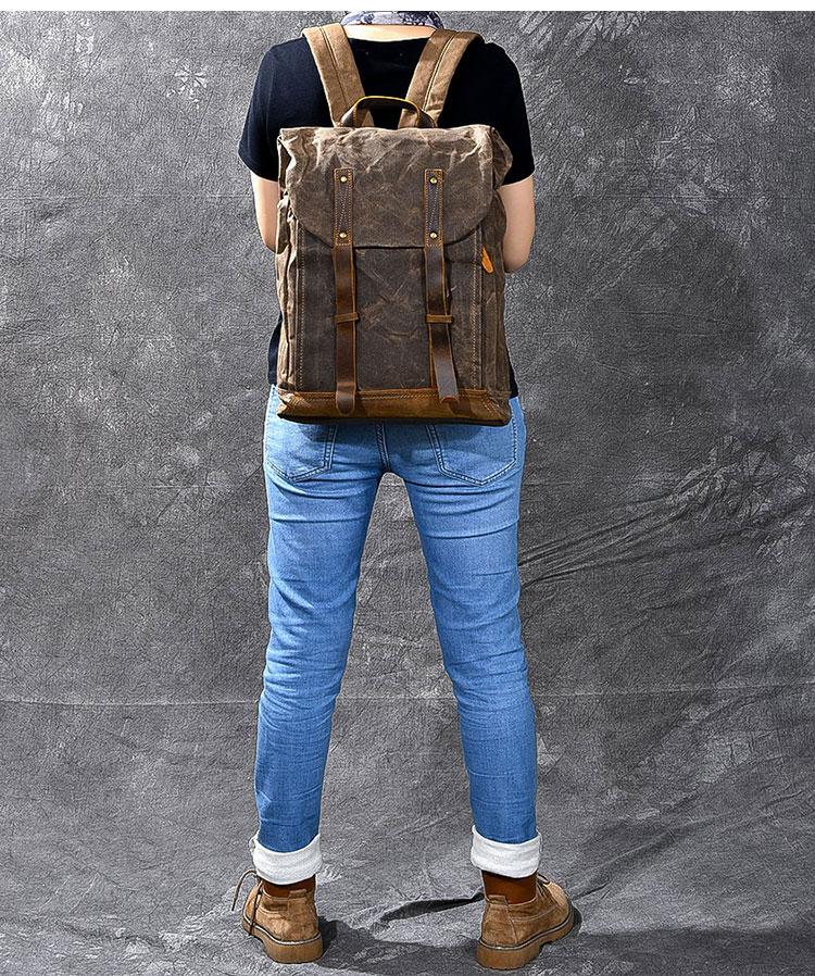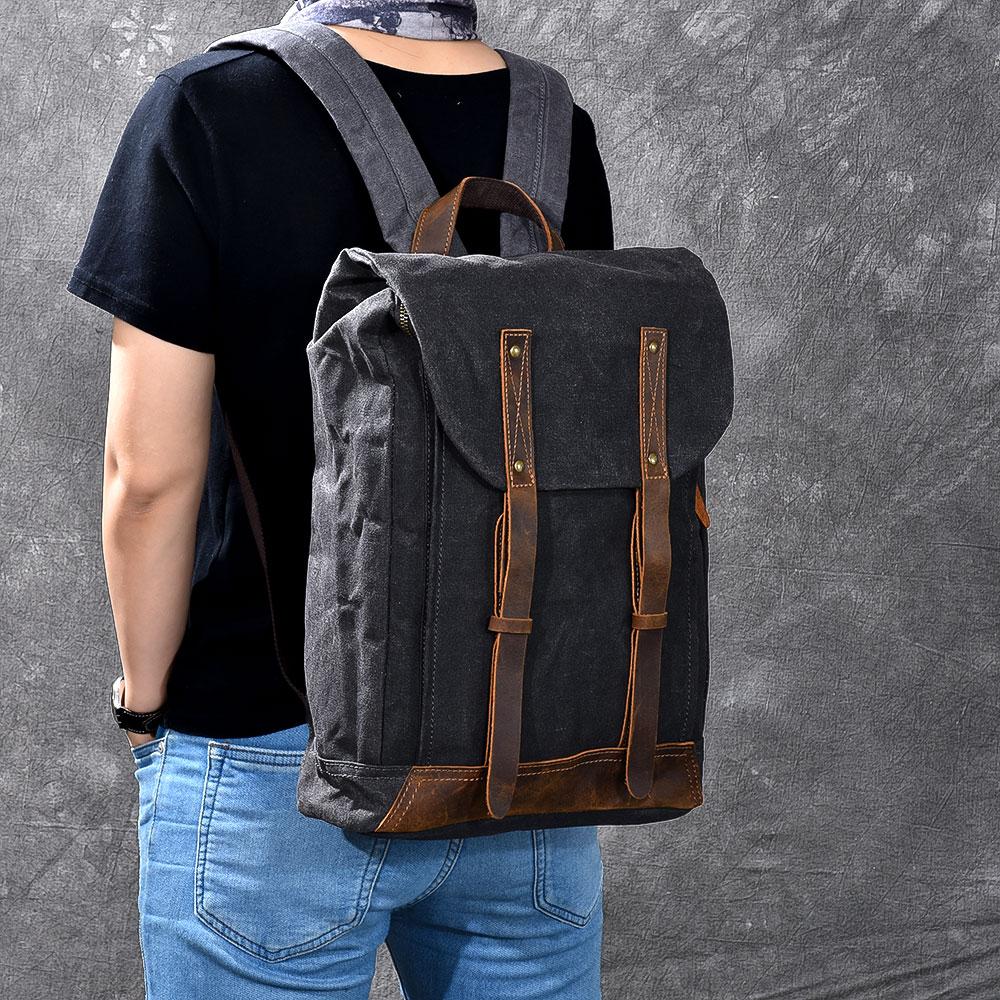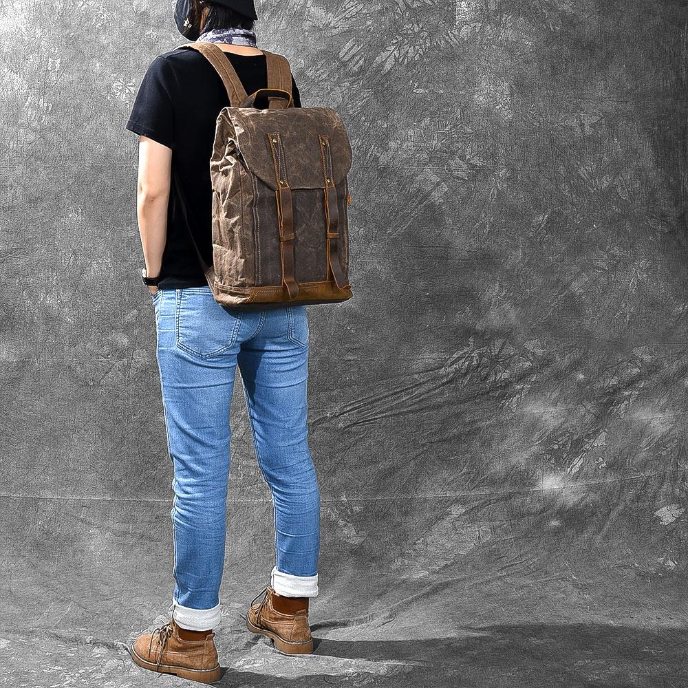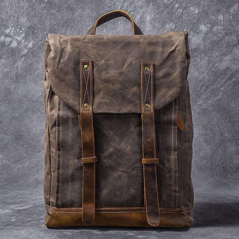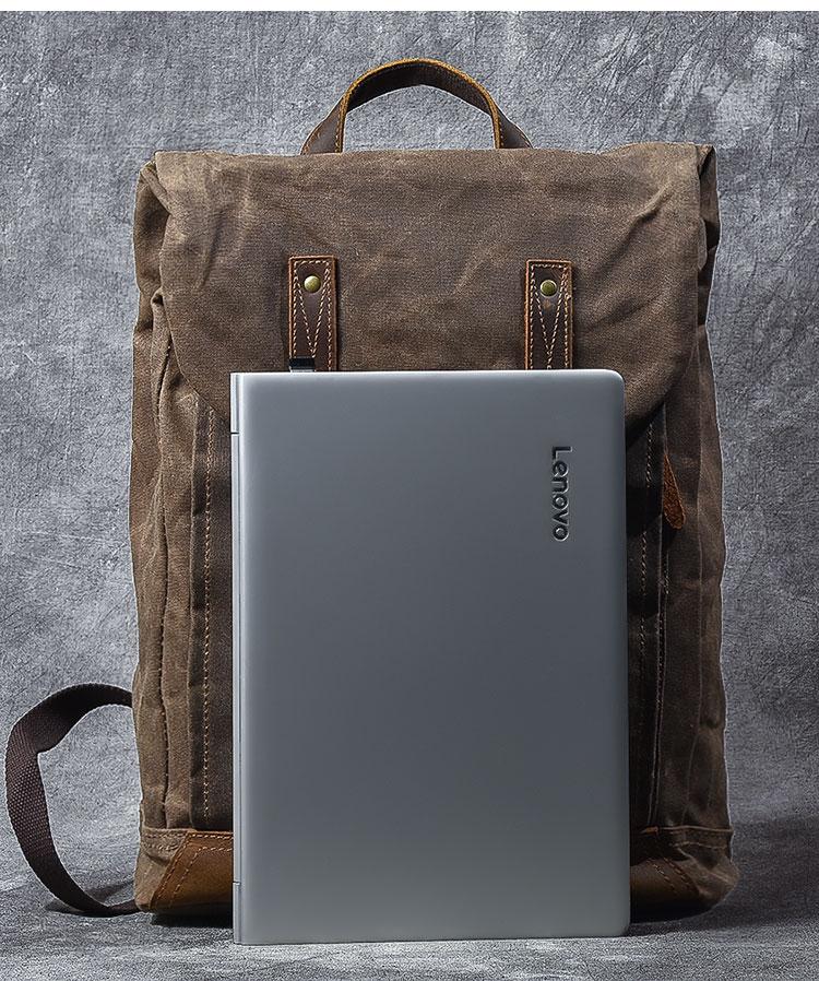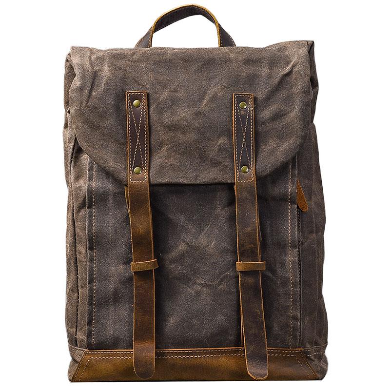 Style: Cool Canvas Leather Mens Womens 16" Gray Computer Bag Brown Travel Backpack College Backpack for Men