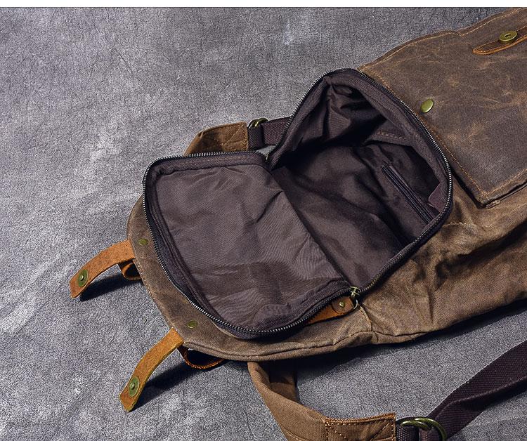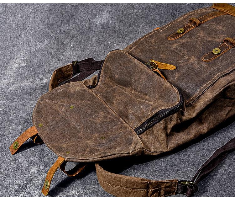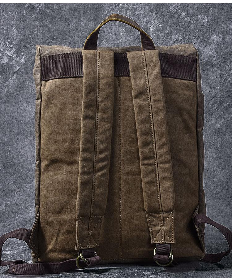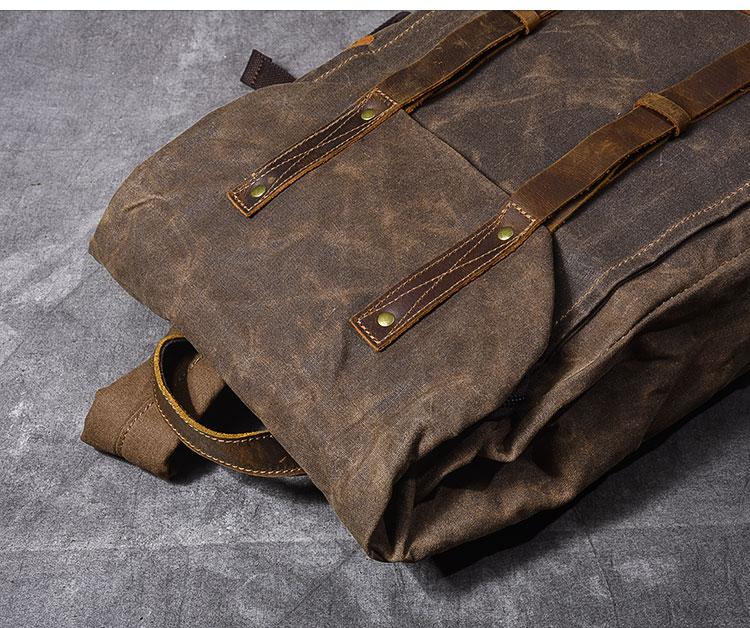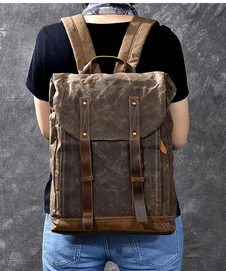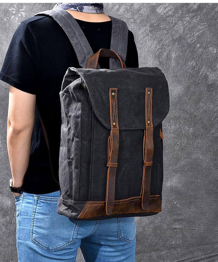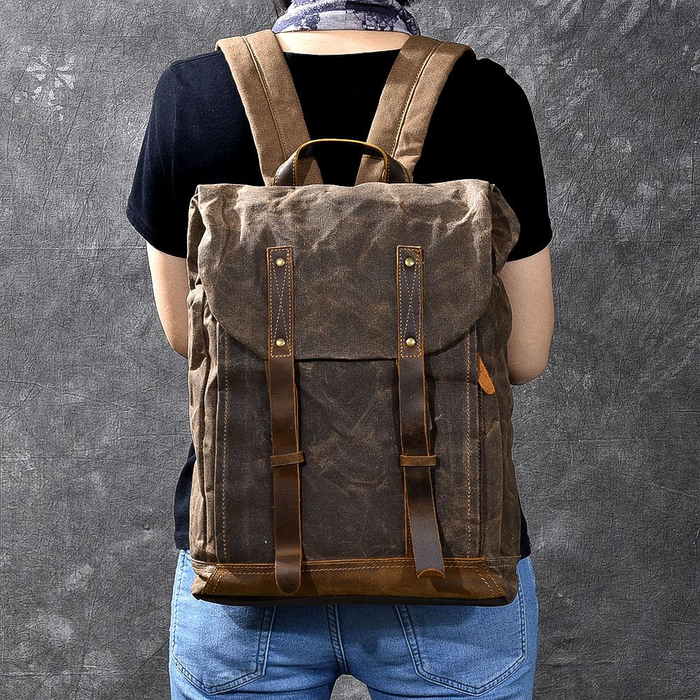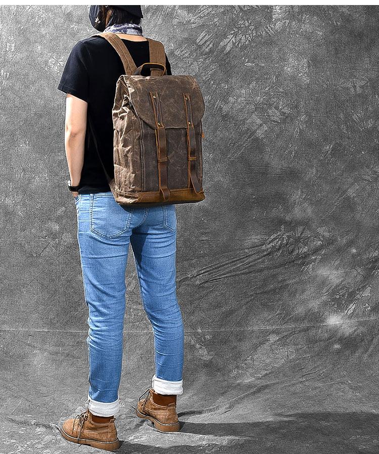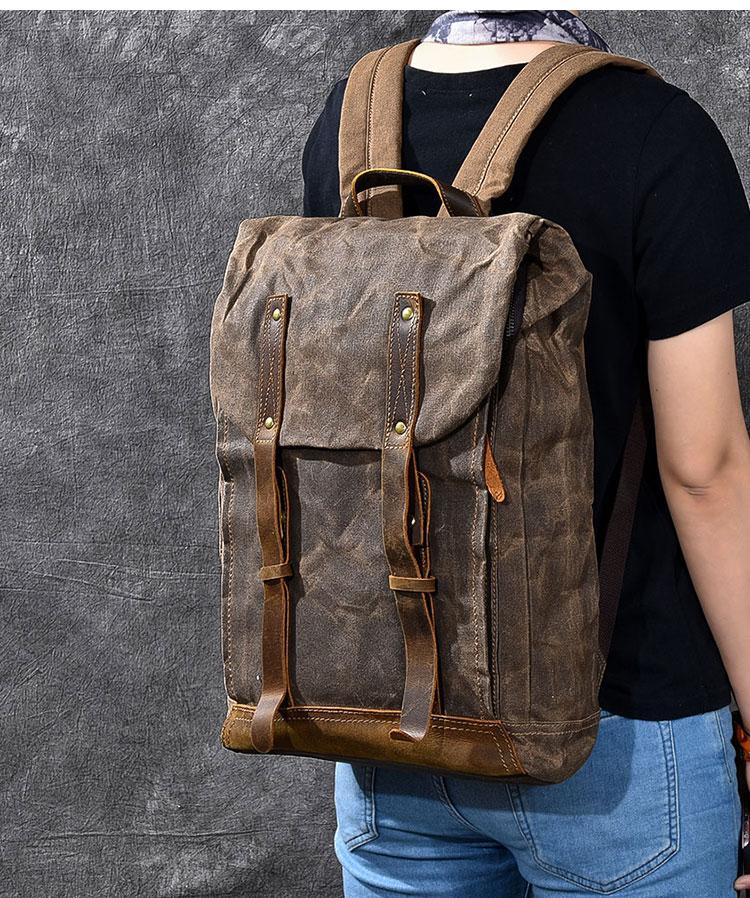 Style: Cool Canvas Leather Mens Womens 16" Gray Computer Bag Brown Travel Backpack College Backpack for Men