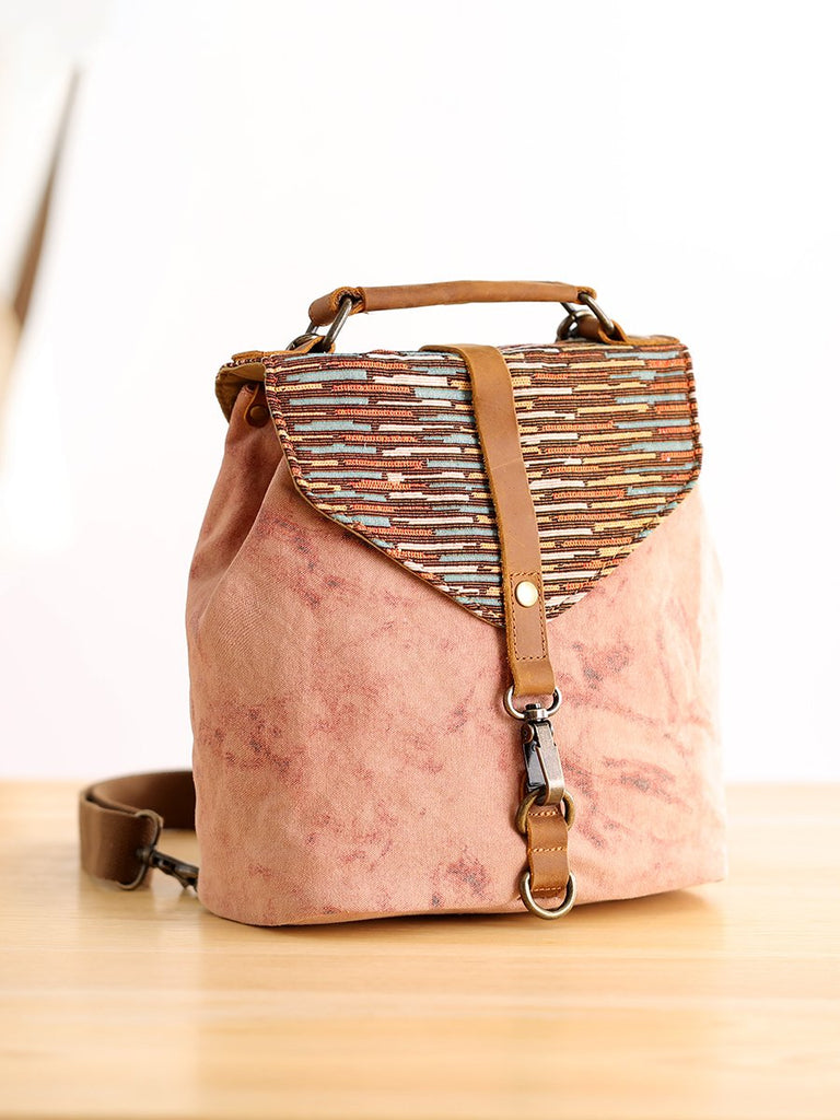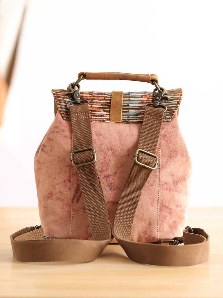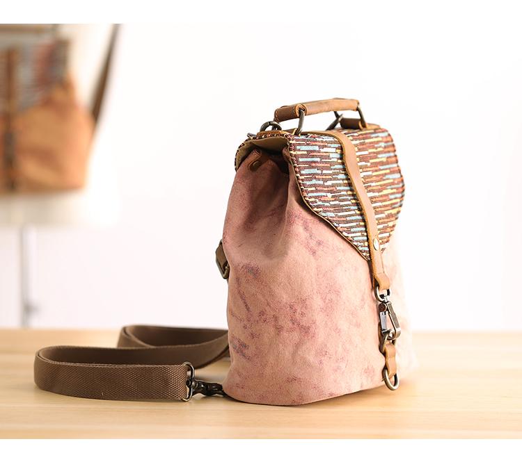 Design: Cool Canvas Leather Mens Womens Small Pink Backpack Khaki Travel Backpack College Backpack for Men