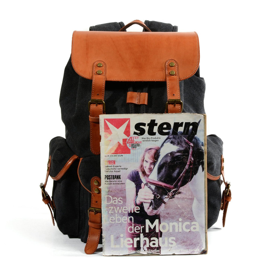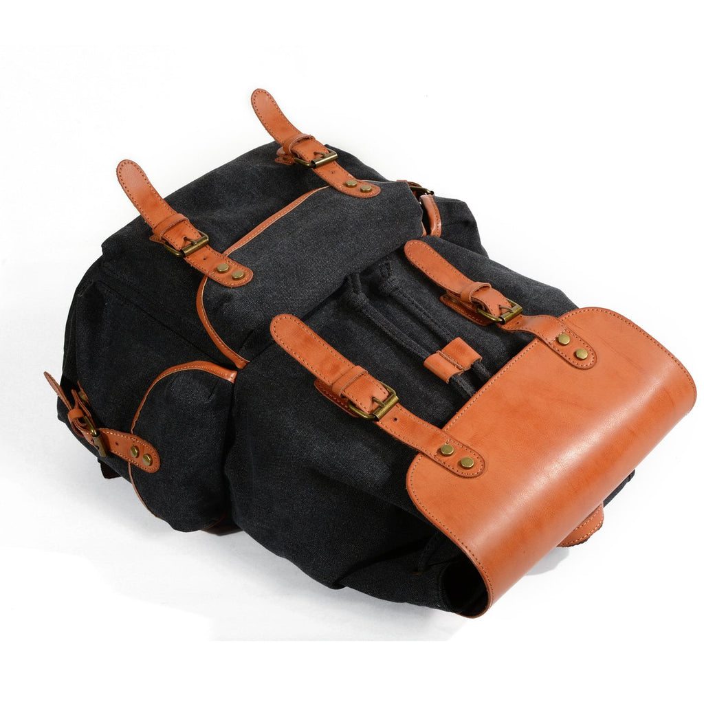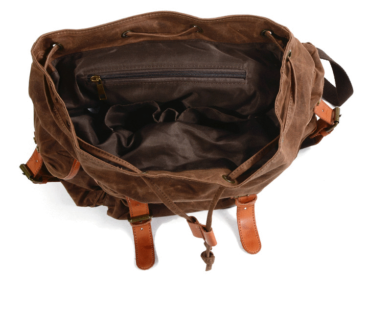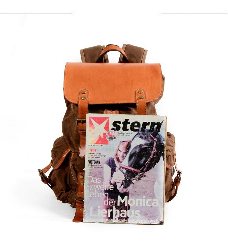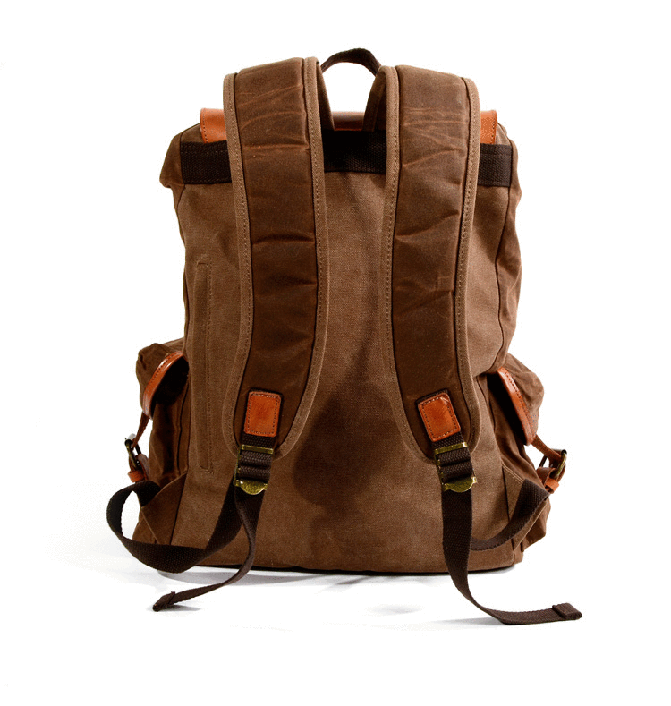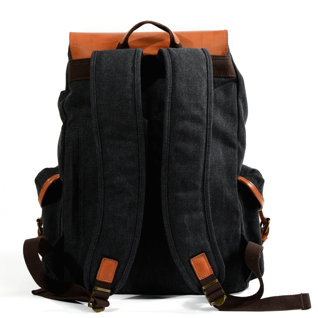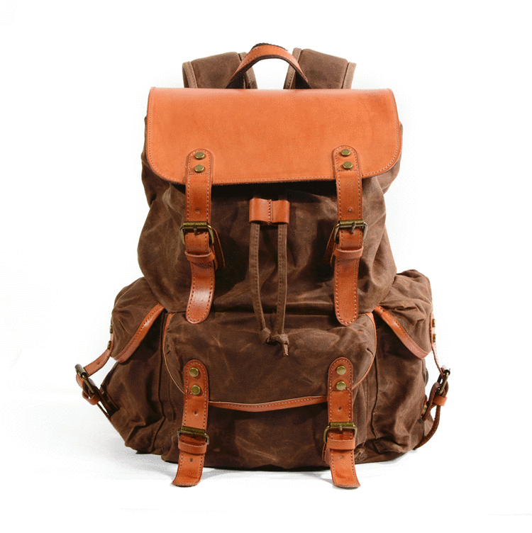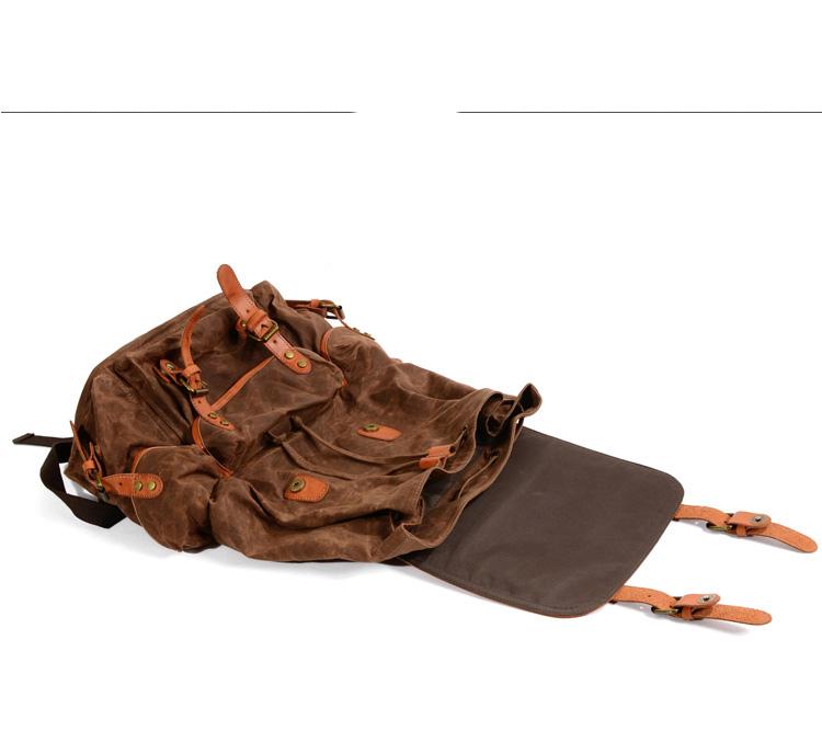 Design: Black Waxed Canvas Mens Waterproof Large Hiking Bag Travel Bag 15.6‘’ Computer Bag for Men