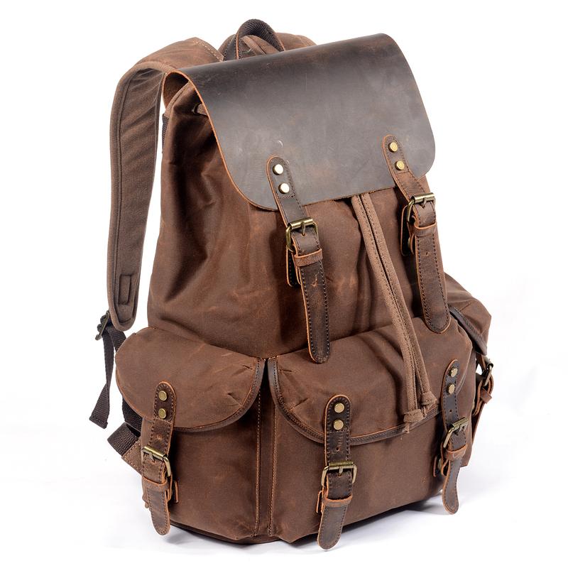 Style: Cool Waxed Canvas Mens Waterproof 15'' Travel Backpack Hiking Backpack for Men