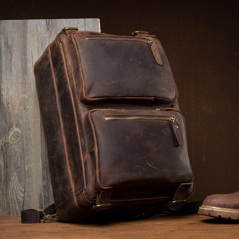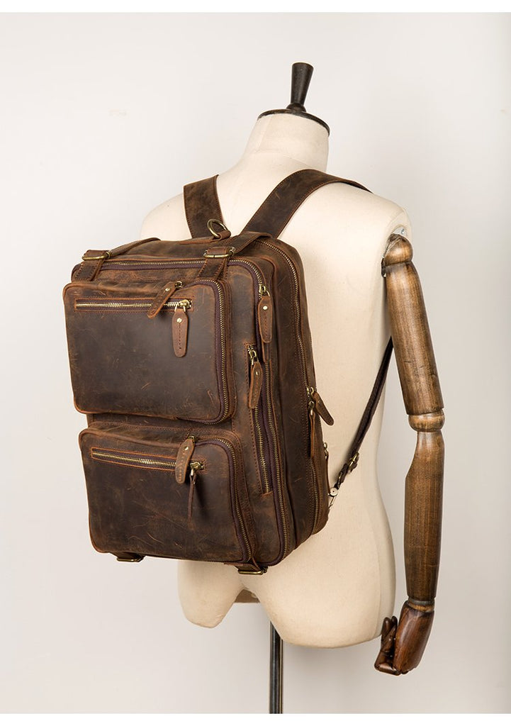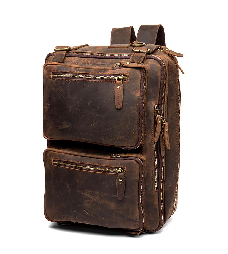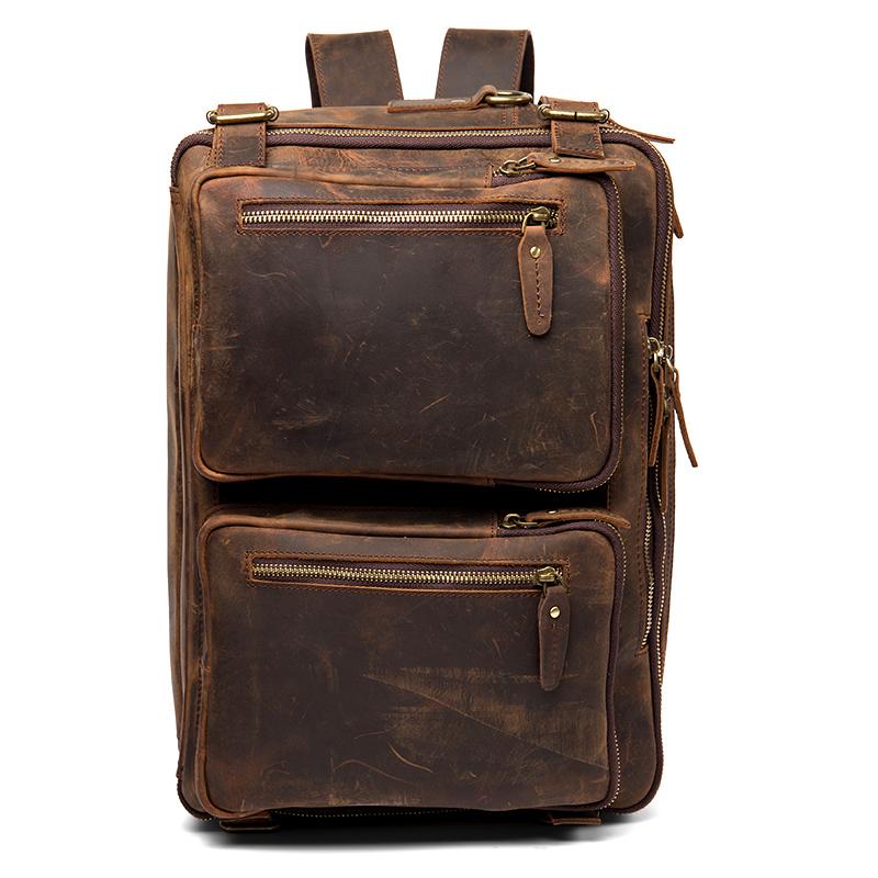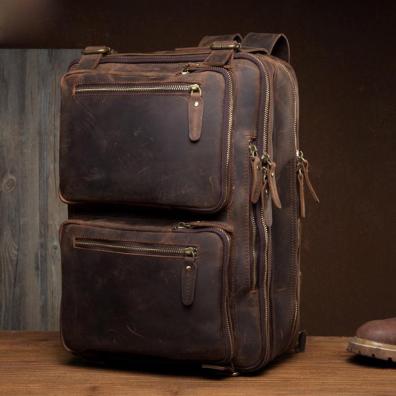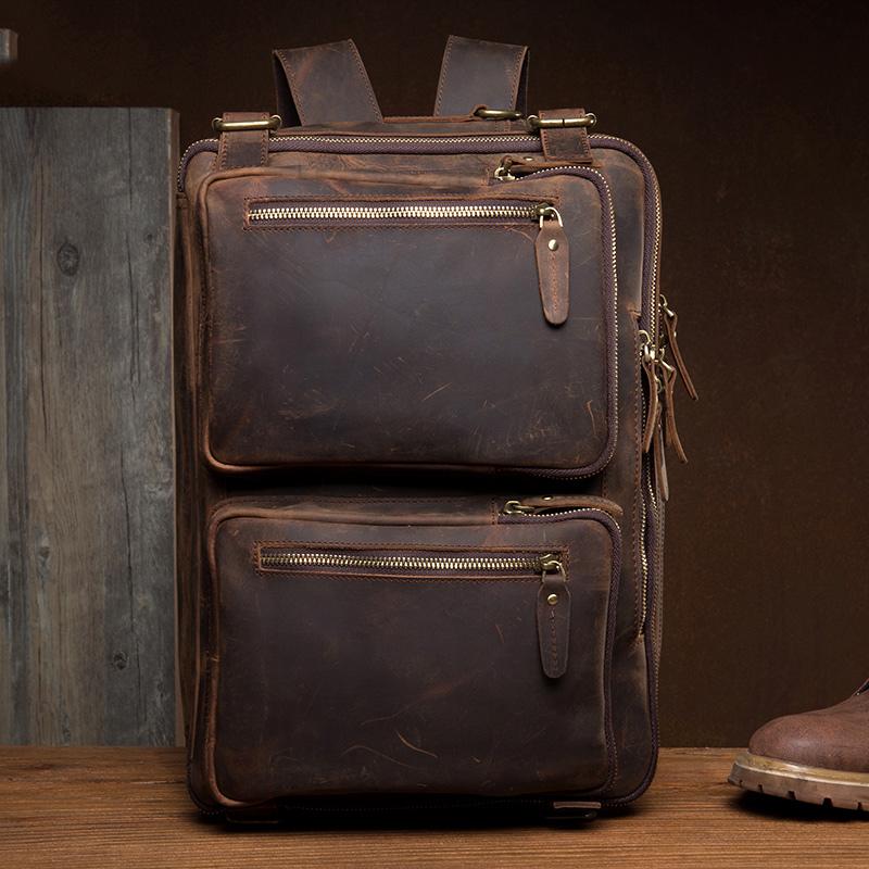 Cool Coffee Leather 15 inches Large Satchel BackPack Travel BackPack School BackPack for Men