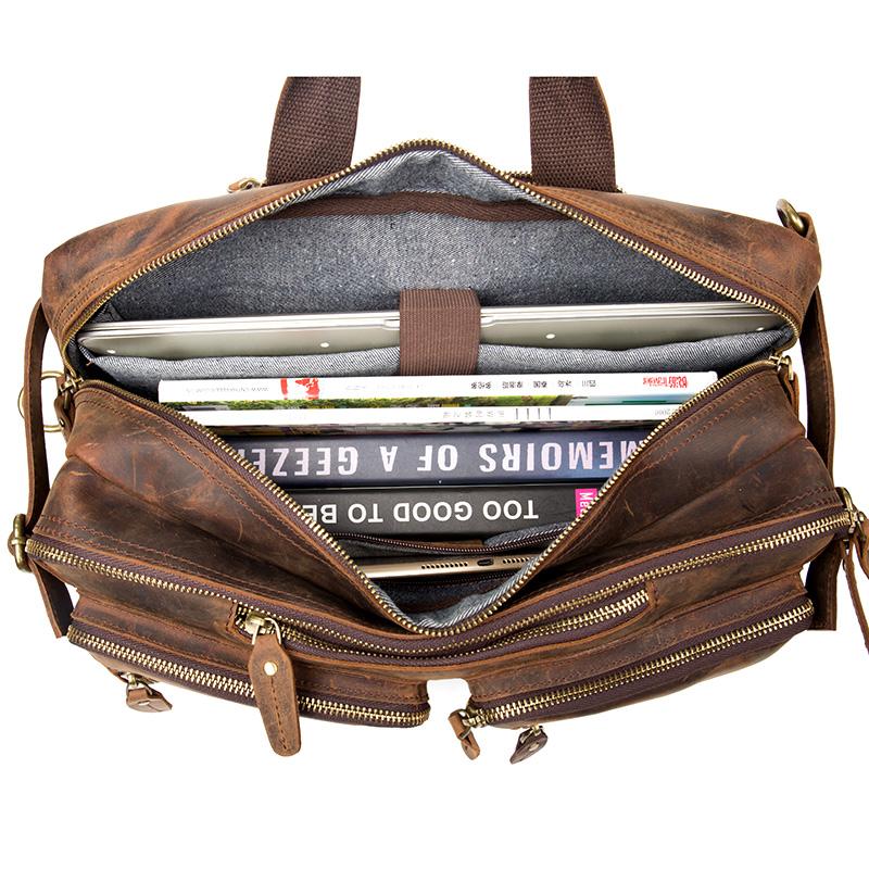 Design: Cool Dark Brown Leather 15 inches Shoulder Bag Travel Bags Handbag Luggae Bag for Men