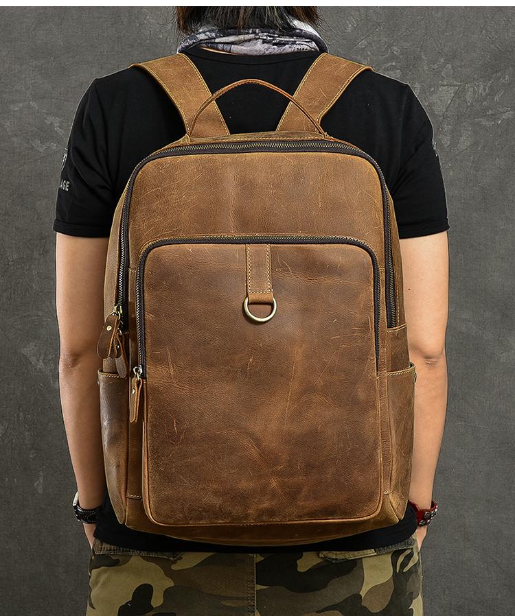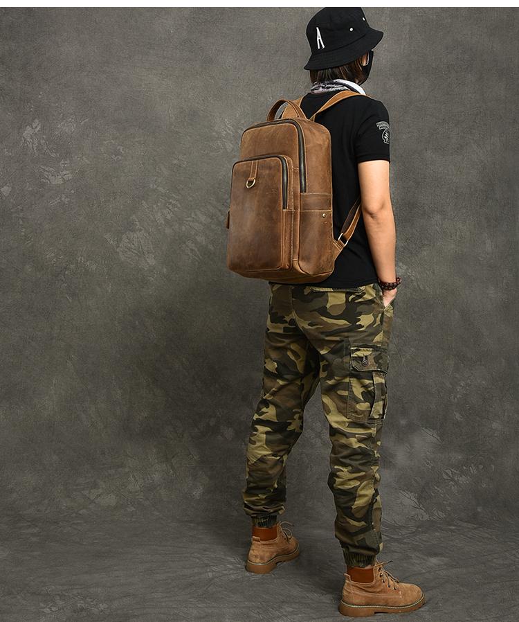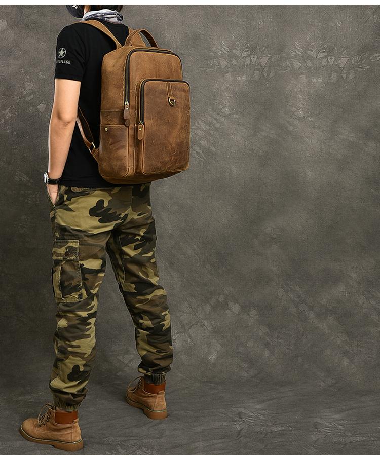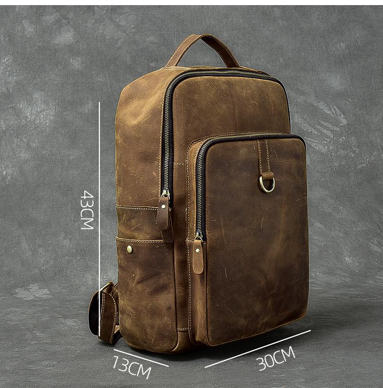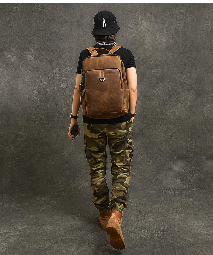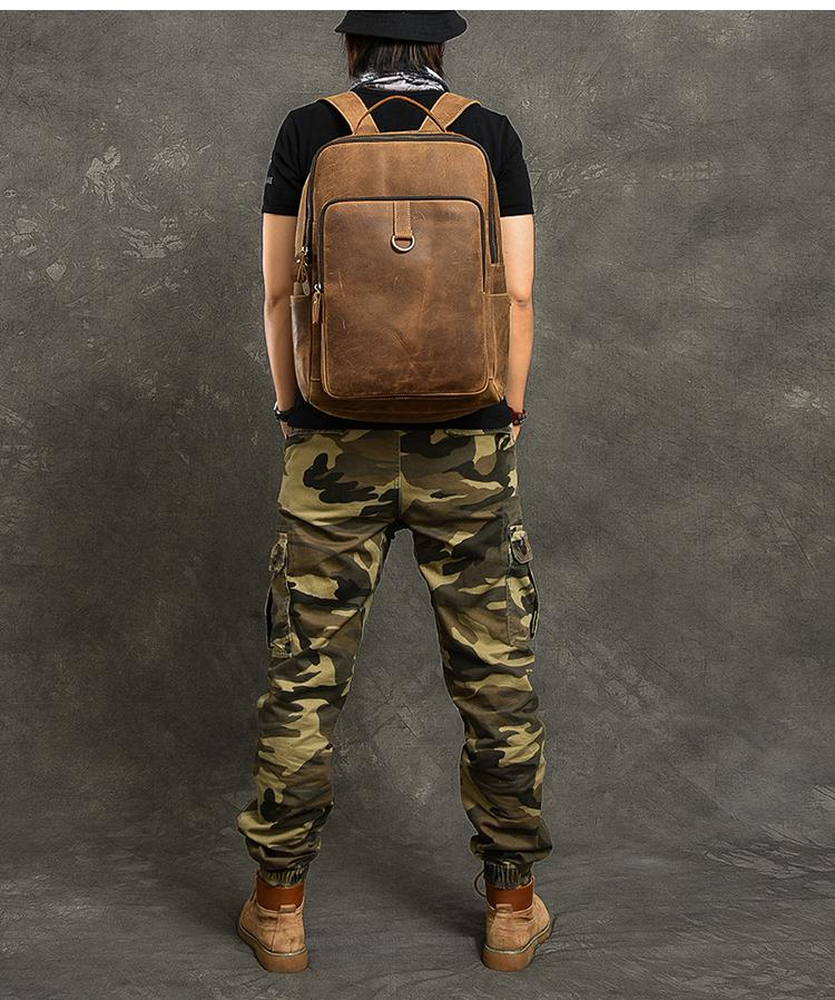 Design: Cool Leather Mens 15" Retro Brown Hiking Backpack Travel Backpack College Backpack for Men