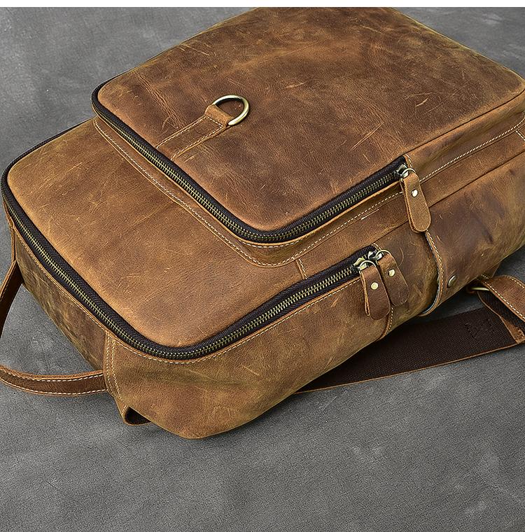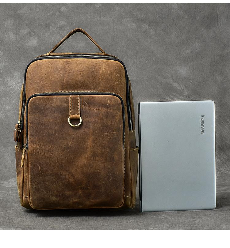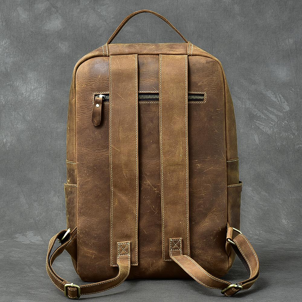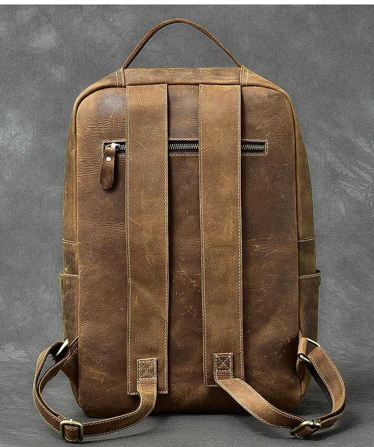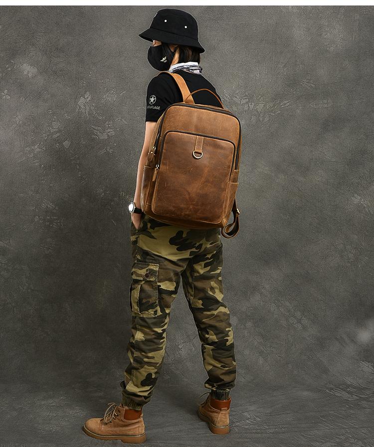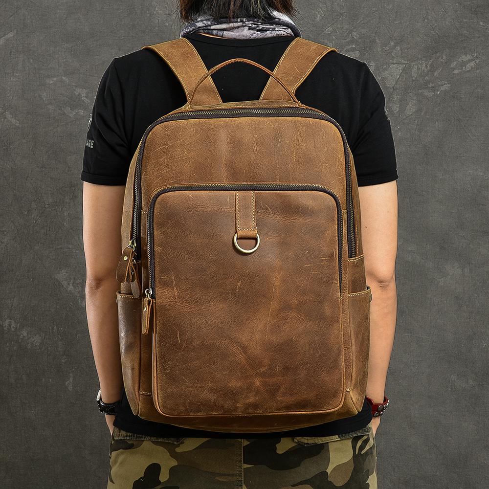 Design: Cool Leather Mens 15" Retro Brown Hiking Backpack Travel Backpack College Backpack for Men