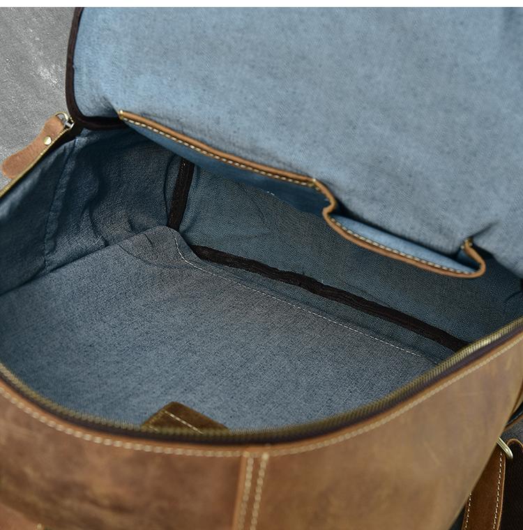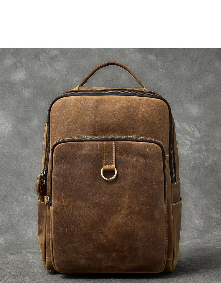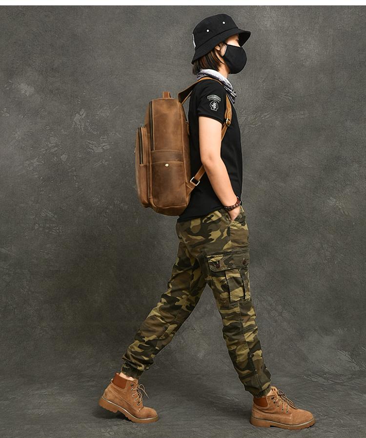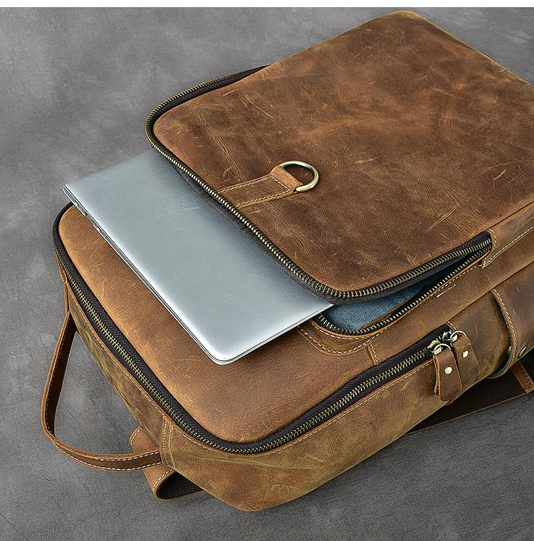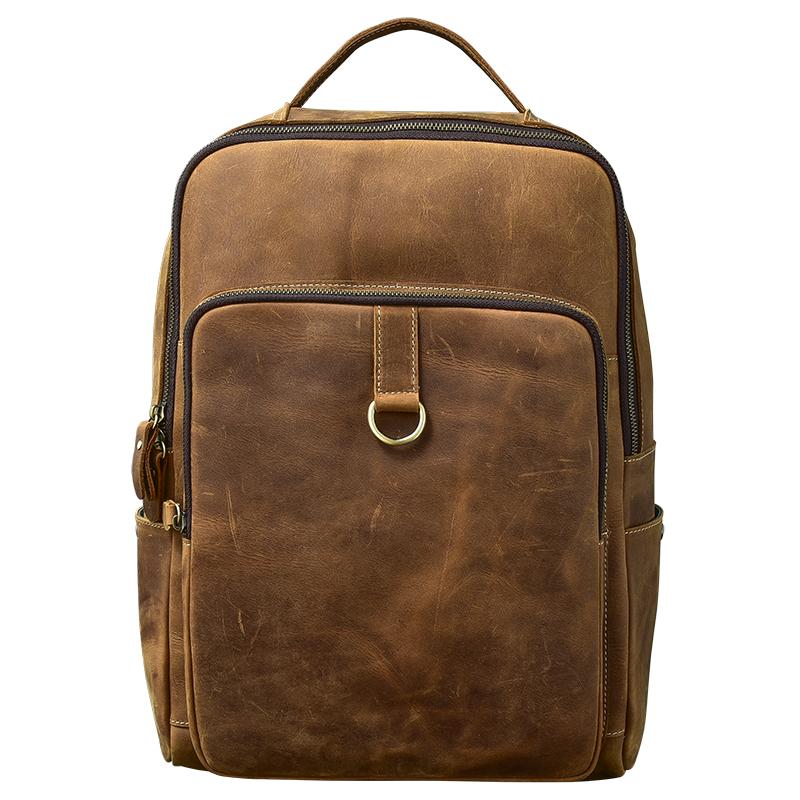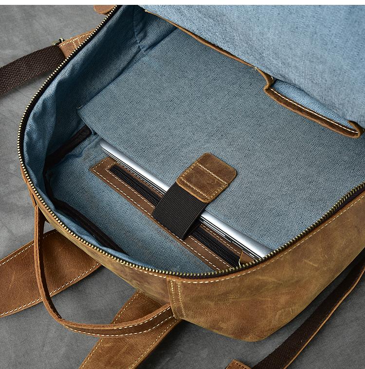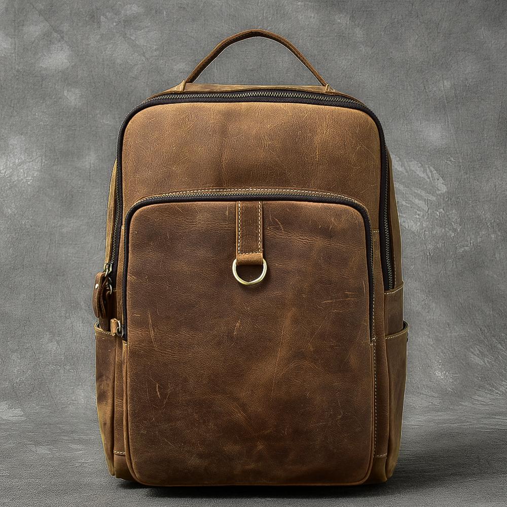 Design: Cool Leather Mens 15" Retro Brown Hiking Backpack Travel Backpack College Backpack for Men