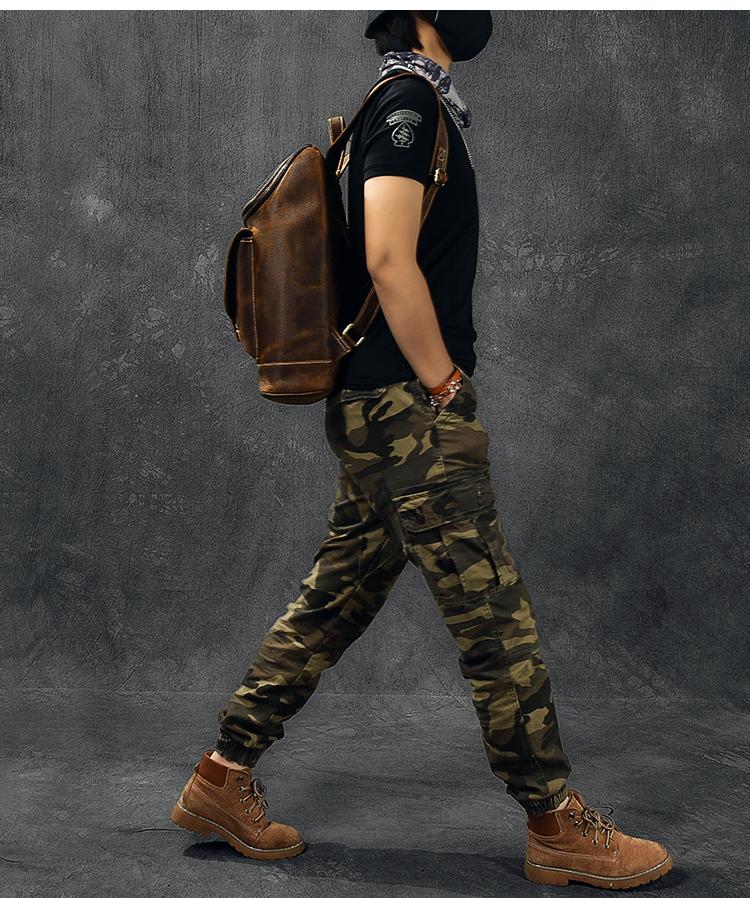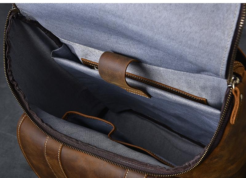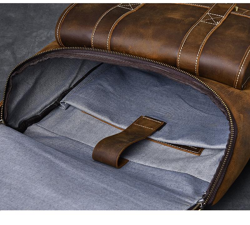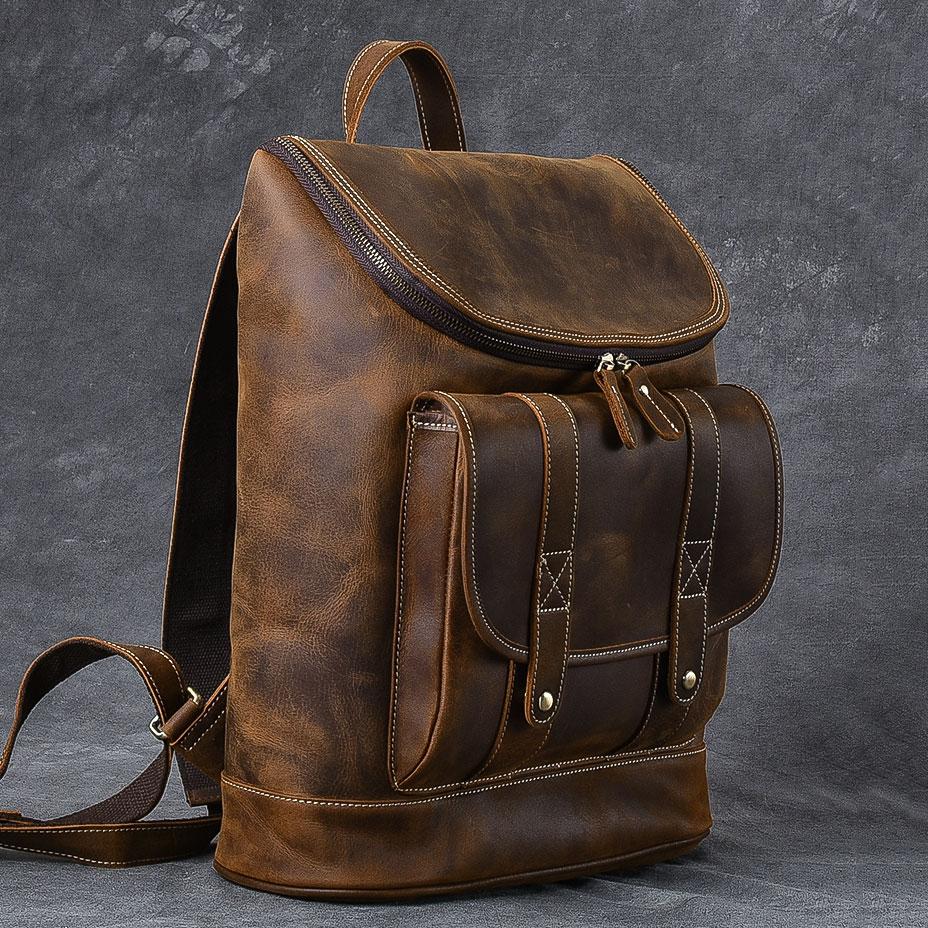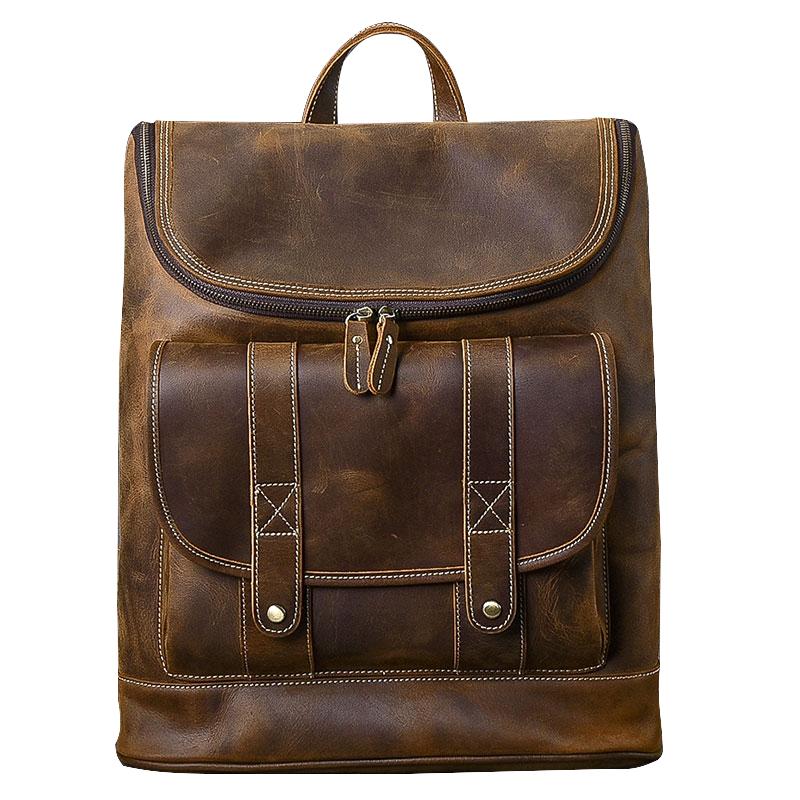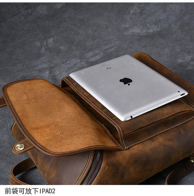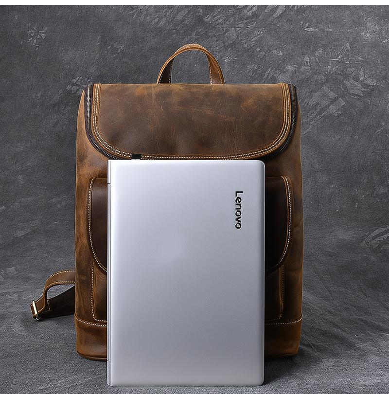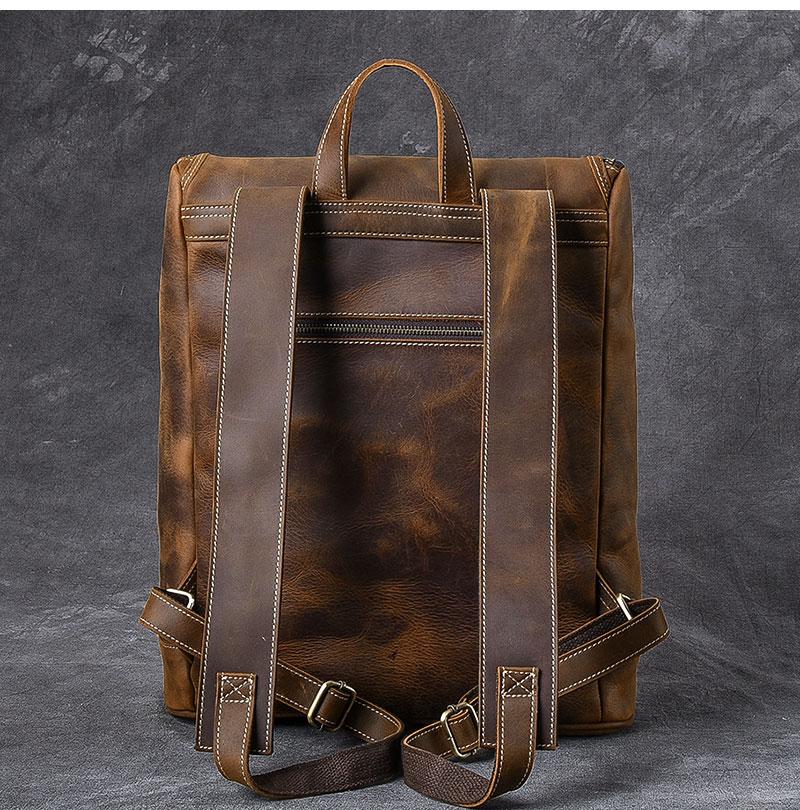 Design: Cool Leather Mens 15" Retro Brown Hiking Backpack Travel Backpack Computer Backpack for Men
