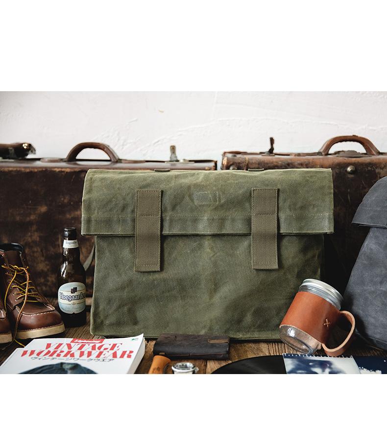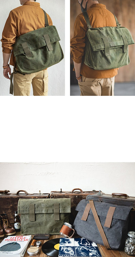 Design: Cool Waxed Canvas Mens Green Military Courier Bag Postman Bag Backpack Large Side Bag For Men