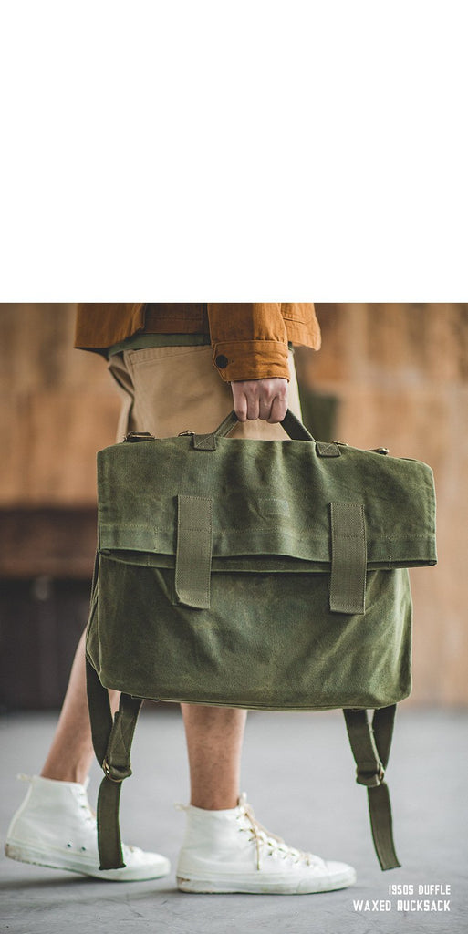 Style: Cool Waxed Canvas Casual Mens Military Backpack Crossbody Shoulder Bag For Men