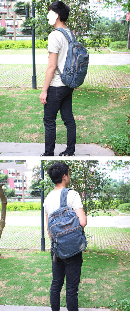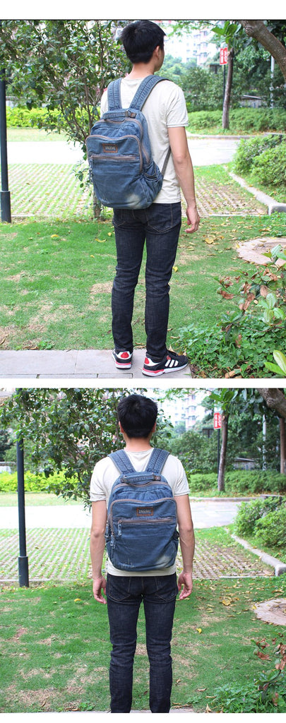 Design: Denim Canvas Mens 16 inches Backpack Multifunctional Backpack Travel Backpack For Men