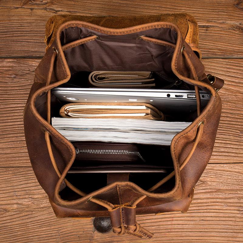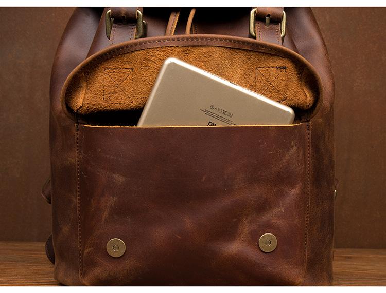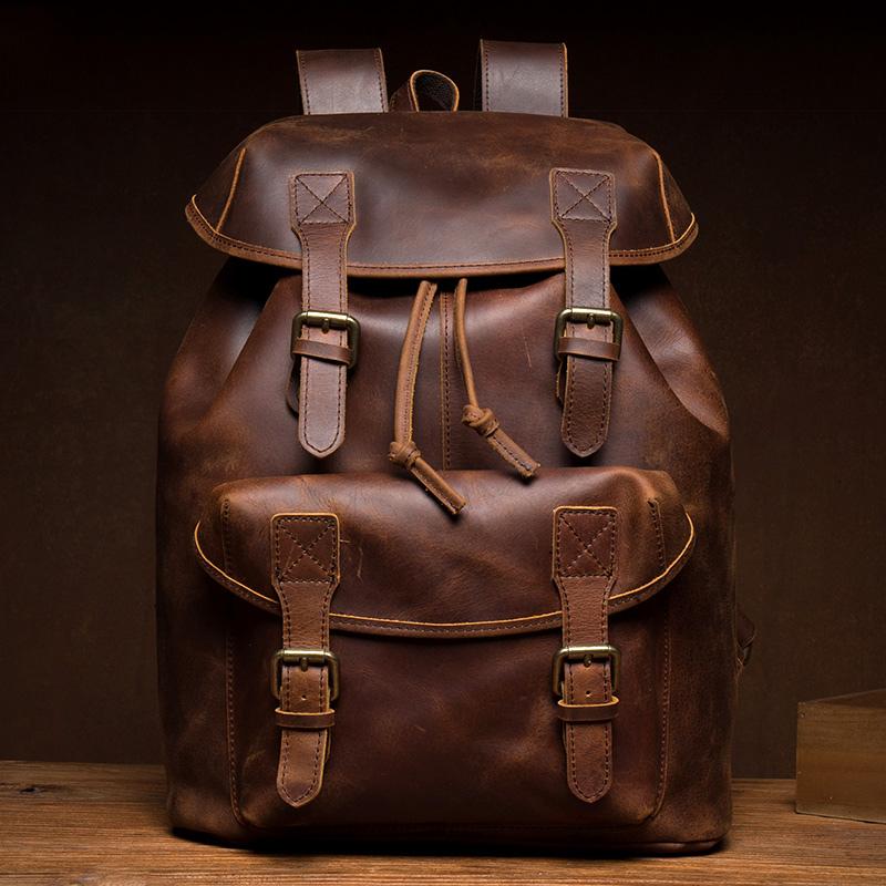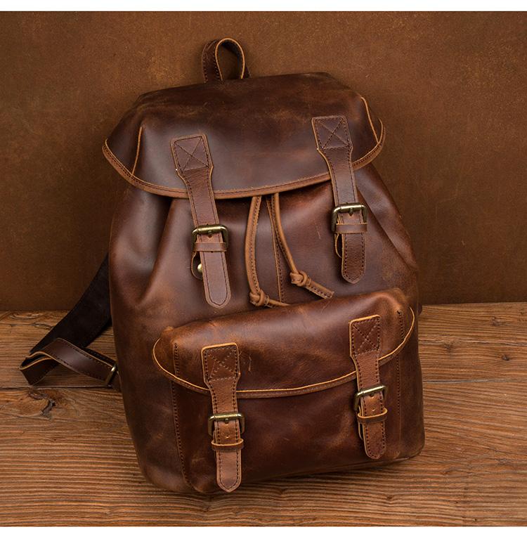 Style: Dark Brown Casual Leather Mens 15 inches Sling Bag Chest Bag One Shoulder Backpacks for Men