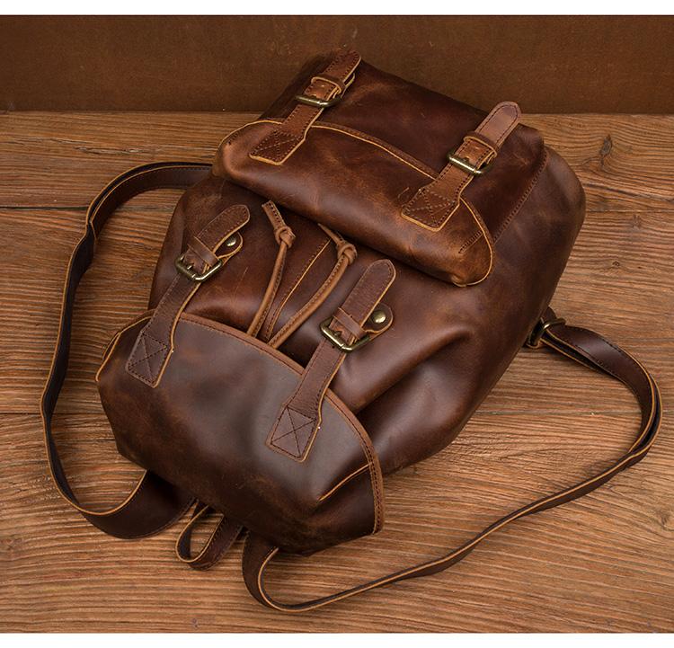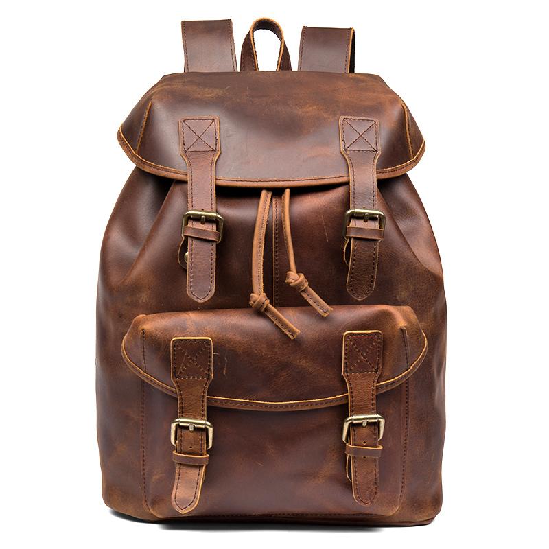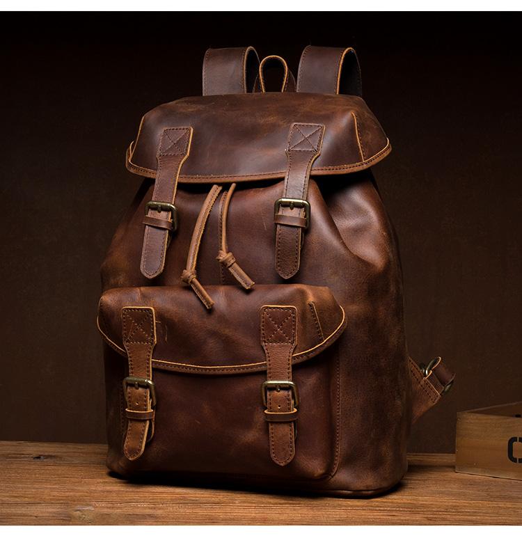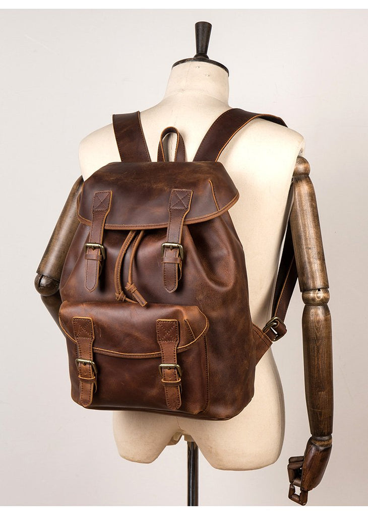 Design: Dark Brown Casual Leather Mens 15 inches Sling Bag Chest Bag One Shoulder Backpacks for Men