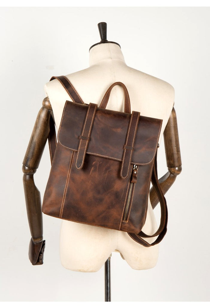 Design: Dark Brown Fashion Mens Leather 13-inch Computer Backpack Brown Travel Backpacks School Backpacks for men