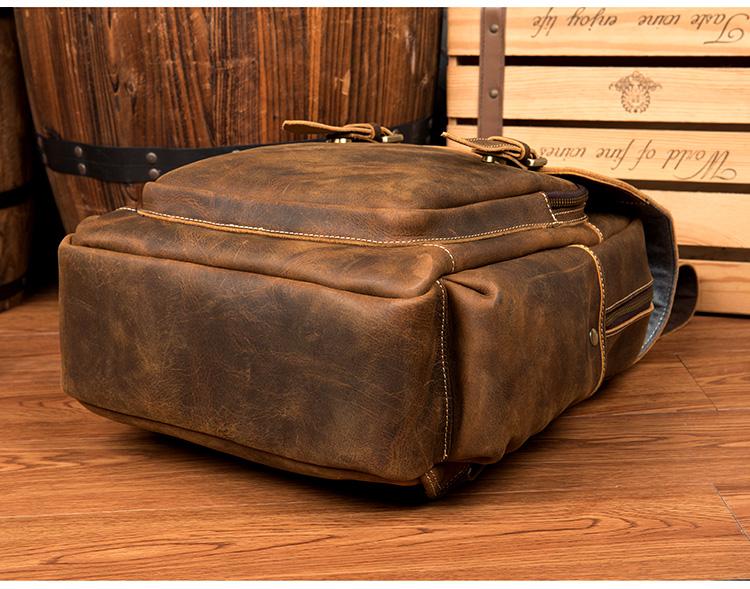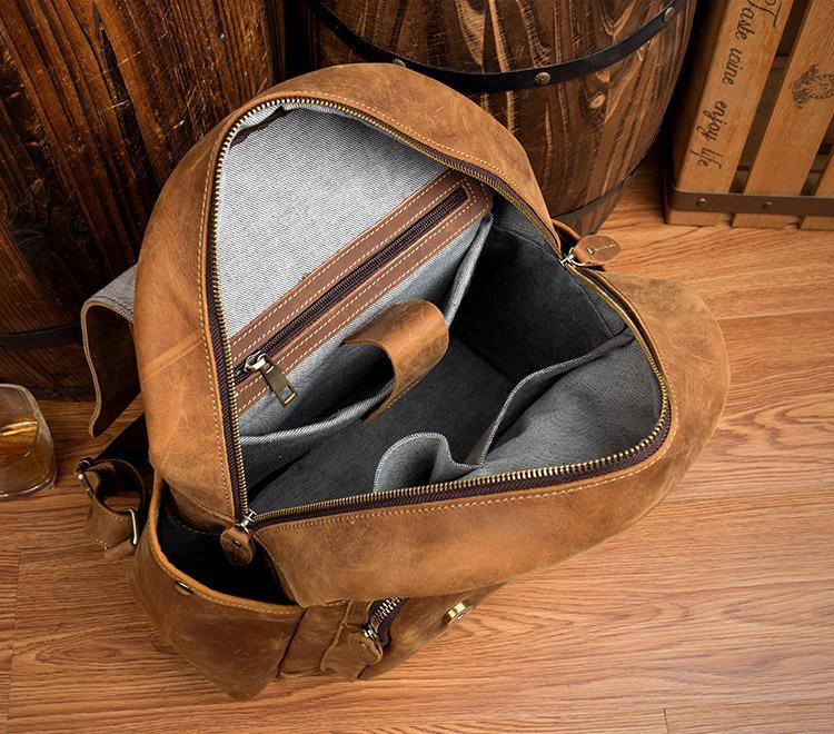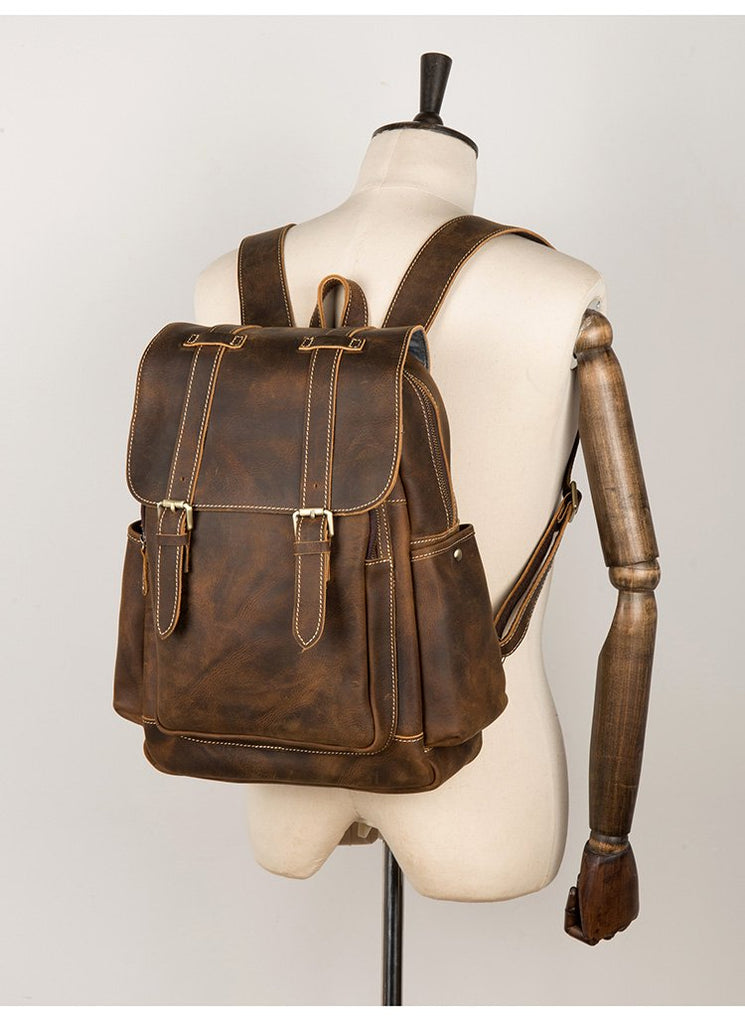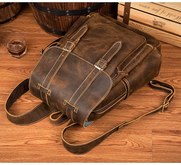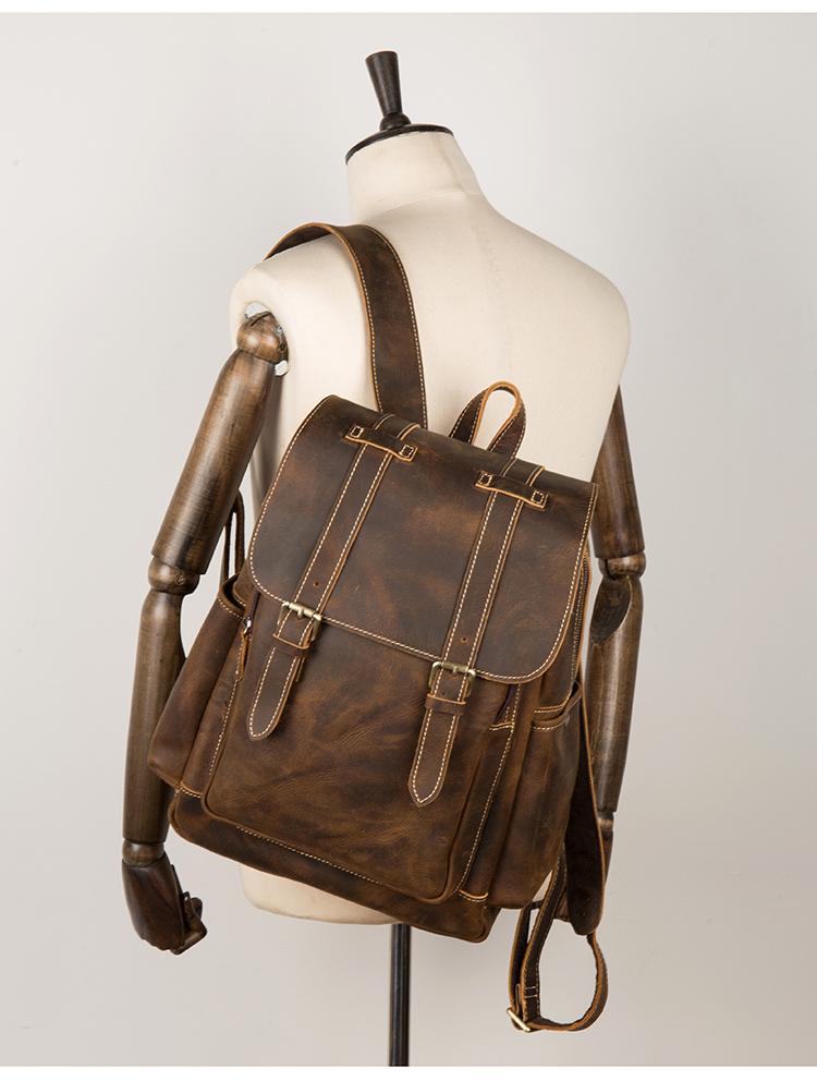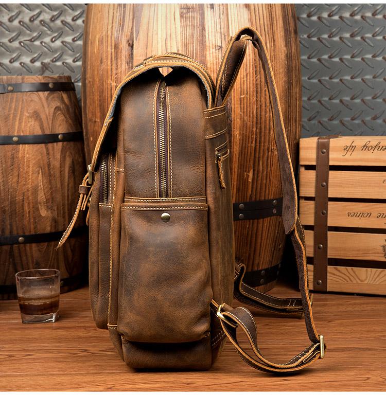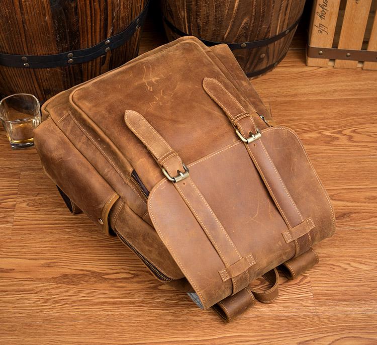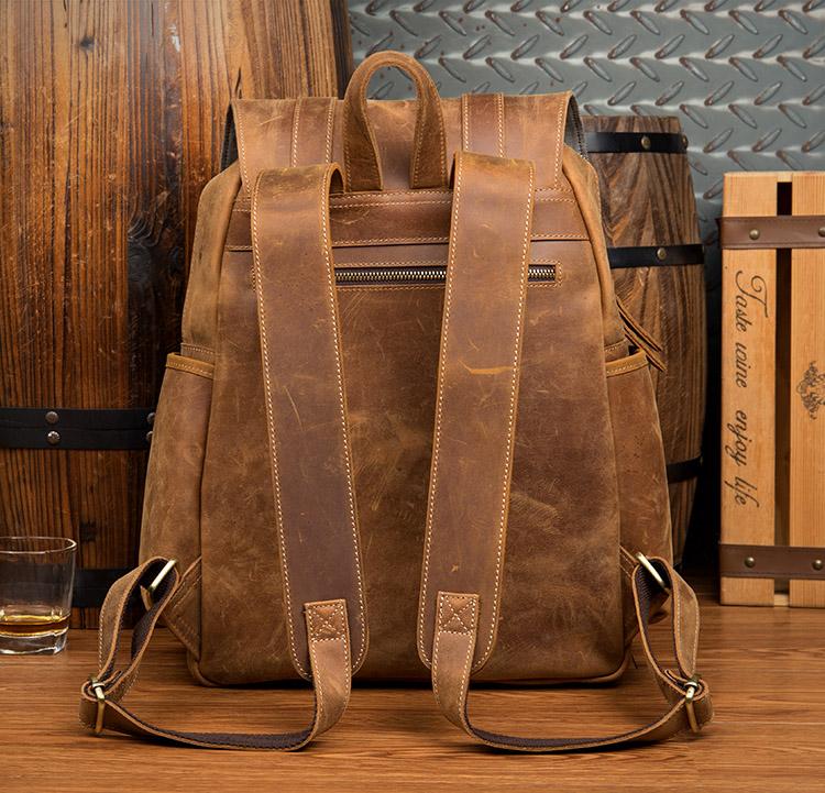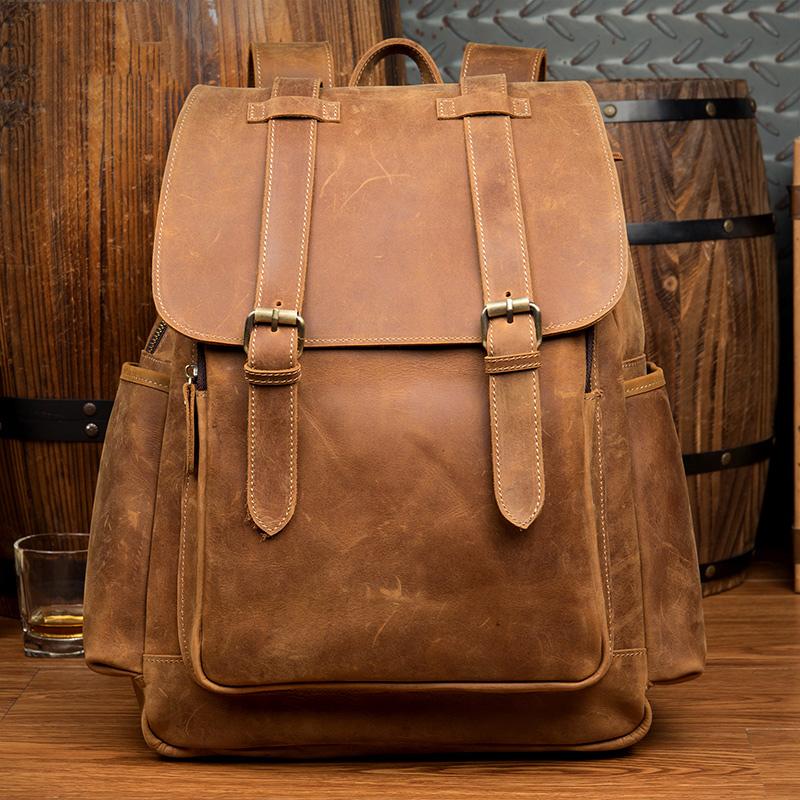 Design: Dark Brown Fashion Mens Leather 15-inch Light Brown Computer Backpack Brown Travel Backpacks School Backpacks for men