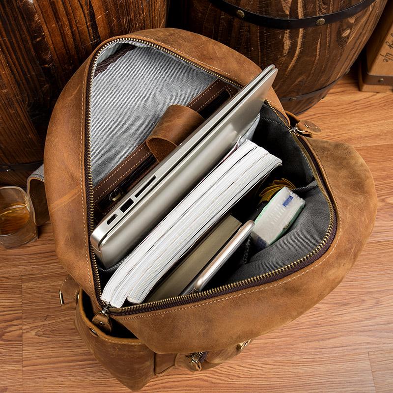 Style: Dark Brown Fashion Mens Leather 15-inch Light Brown Computer Backpack Brown Travel Backpacks School Backpacks for men
