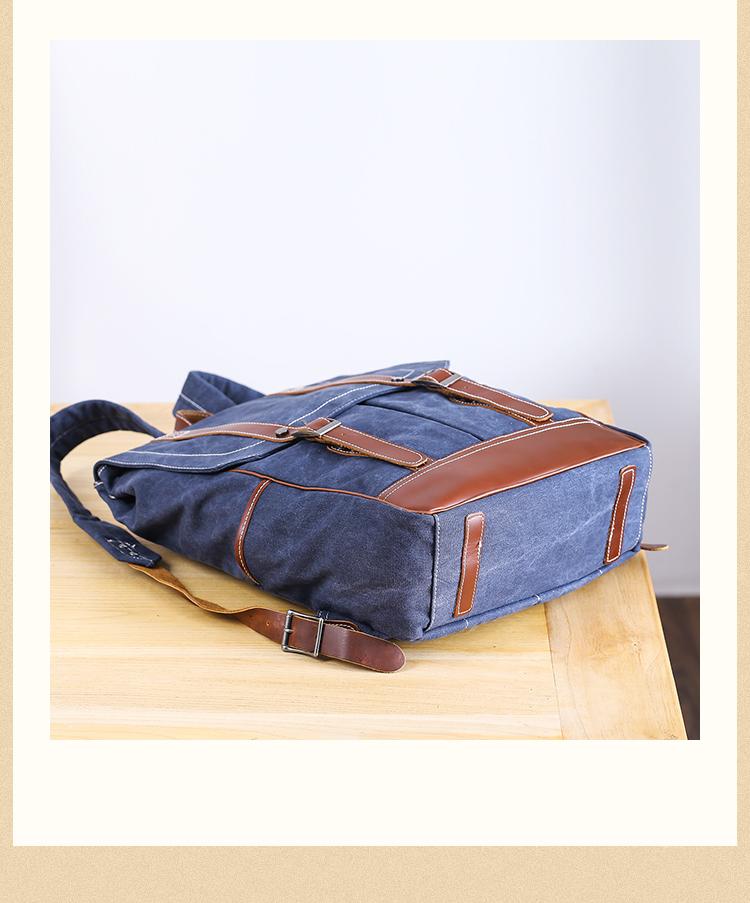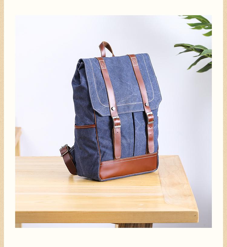 Design: Denim Blue Waxed Canvas Mens Large 14'' Laptop Backpack College Backpack Hiking Backpack for Men