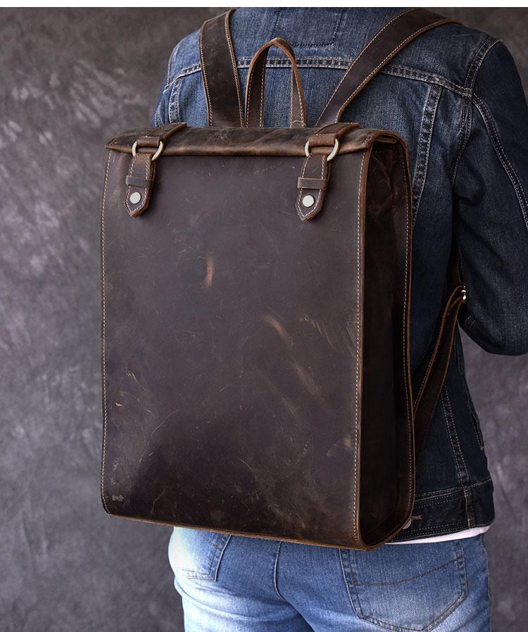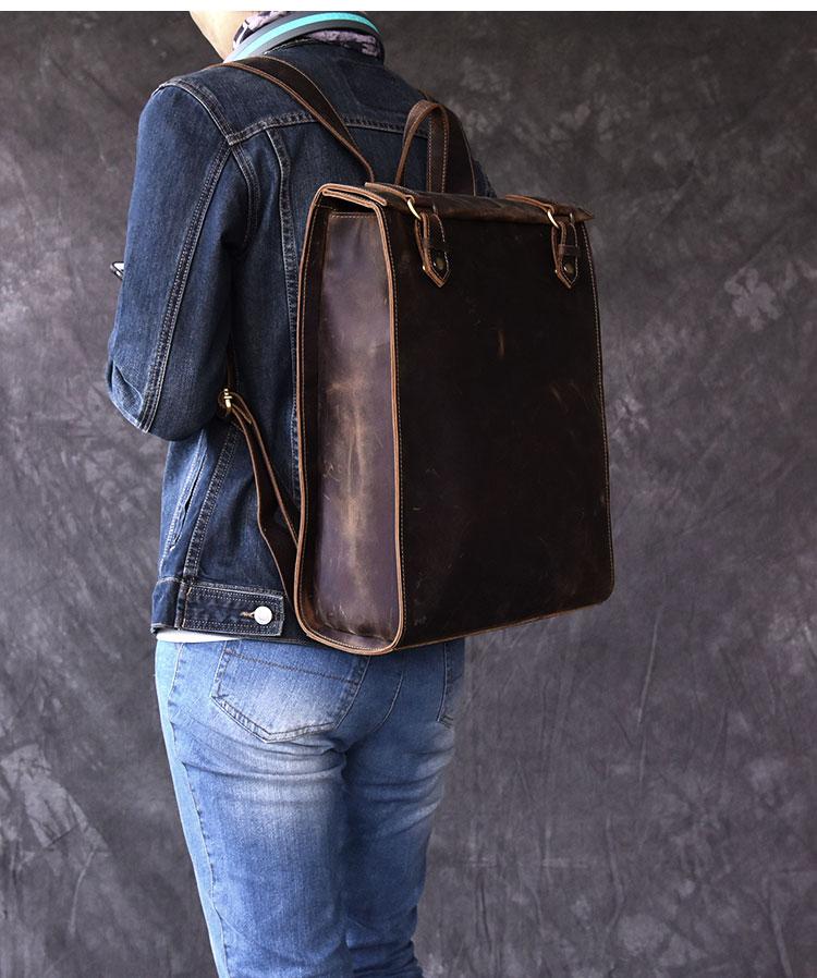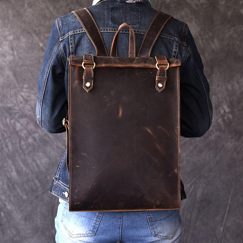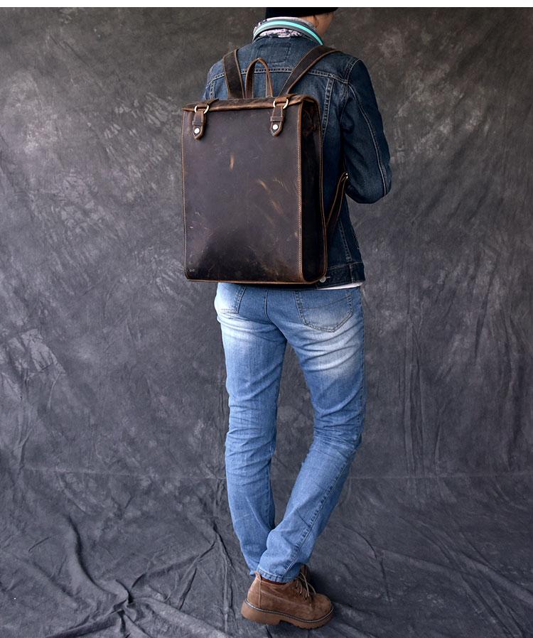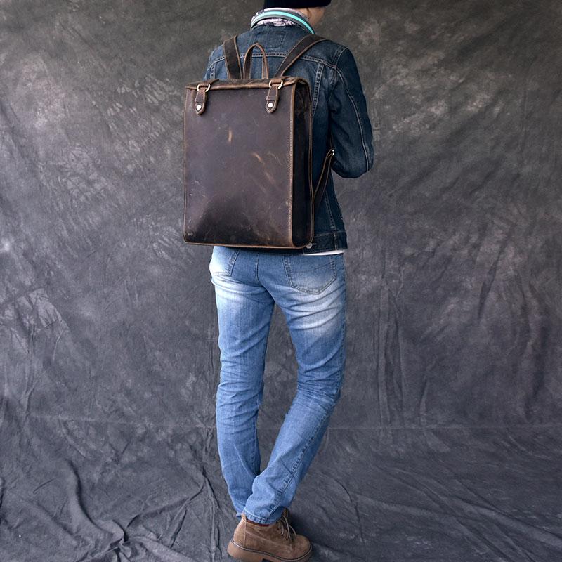 Style: Fashion Canvas Leather Mens 14" Brown Computer Backpack Black Travel Backpack College Backpack for Men
