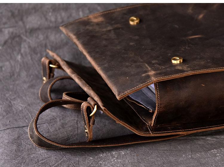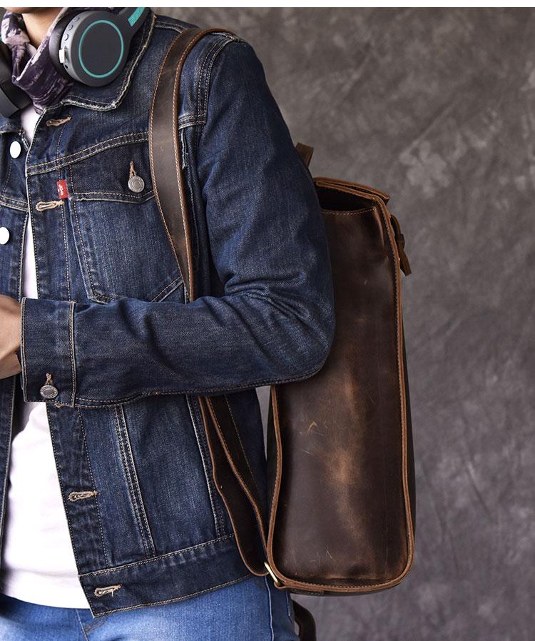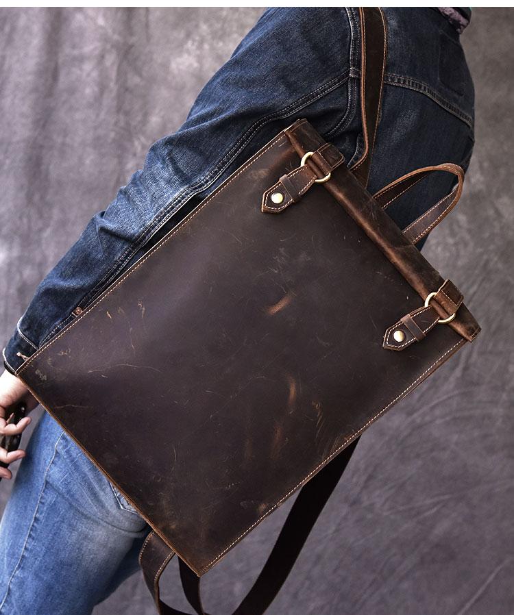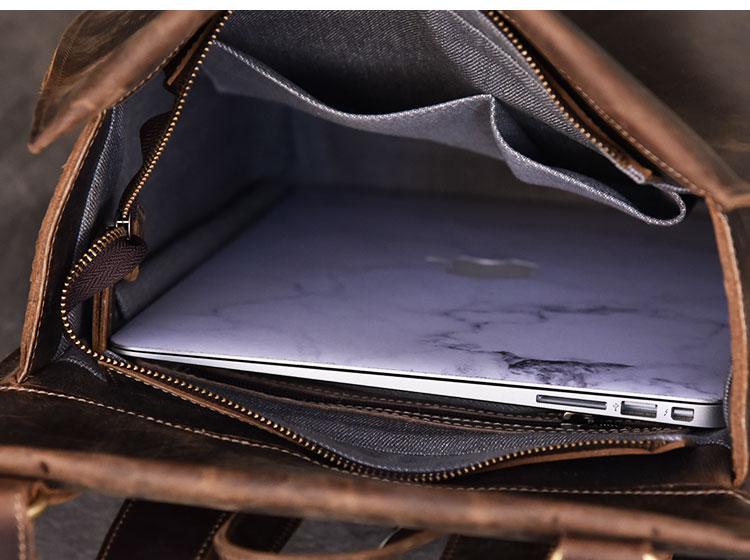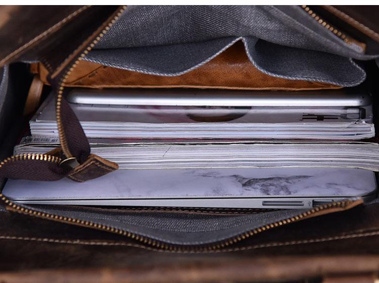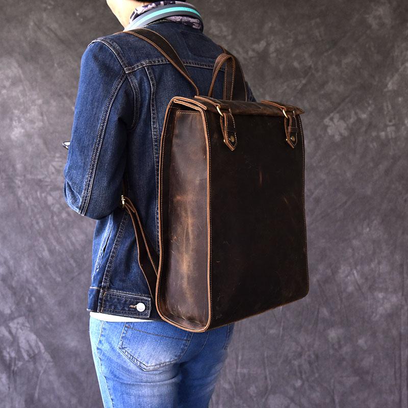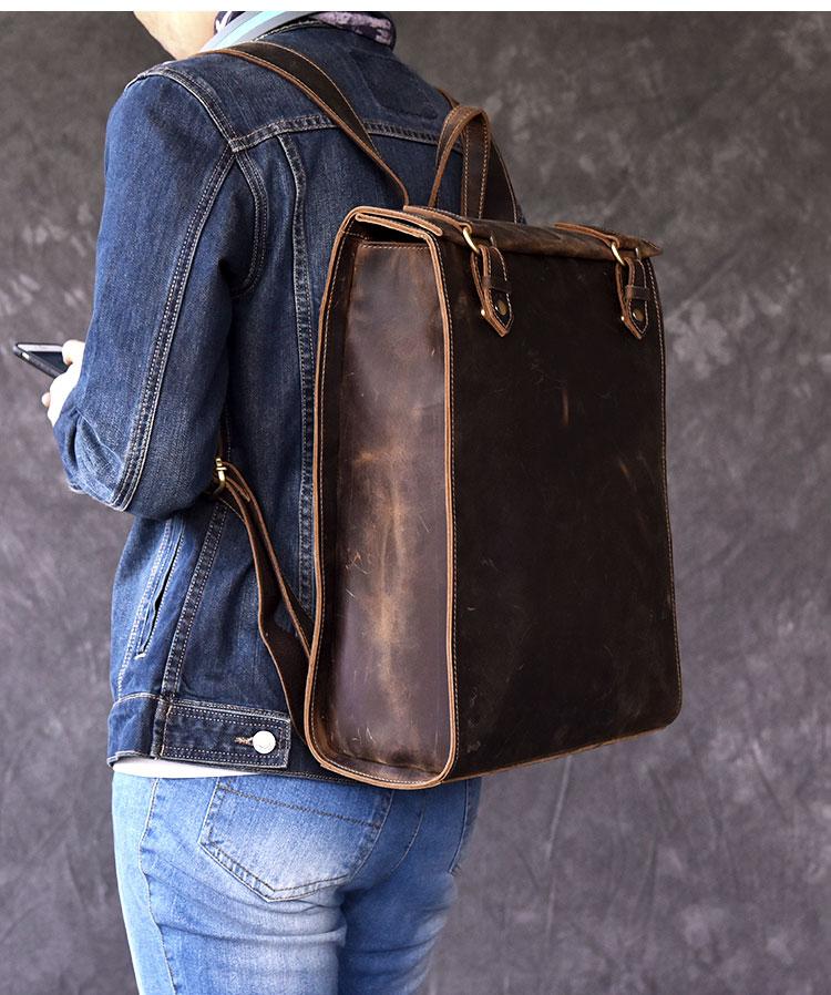 Style: Fashion Canvas Leather Mens 14" Brown Computer Backpack Black Travel Backpack College Backpack for Men