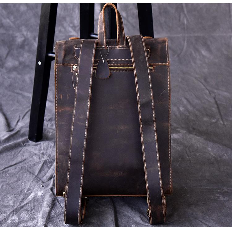 Design: Fashion Canvas Leather Mens 14" Brown Computer Backpack Black Travel Backpack College Backpack for Men