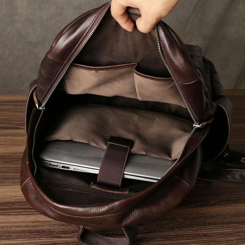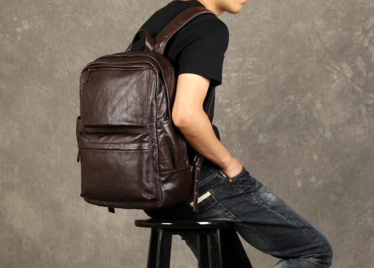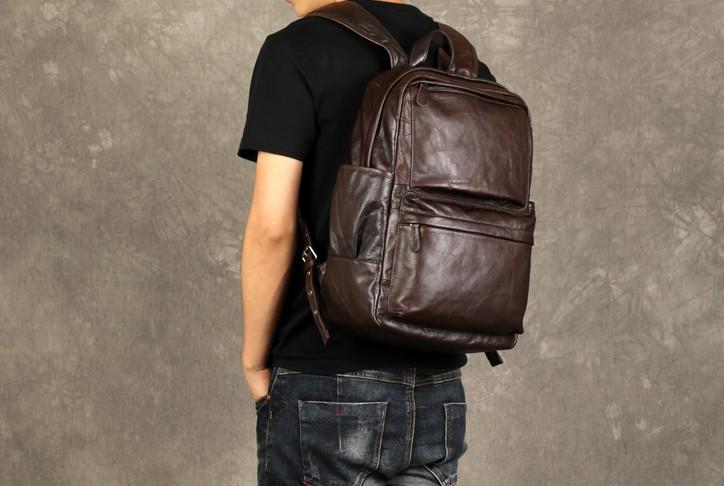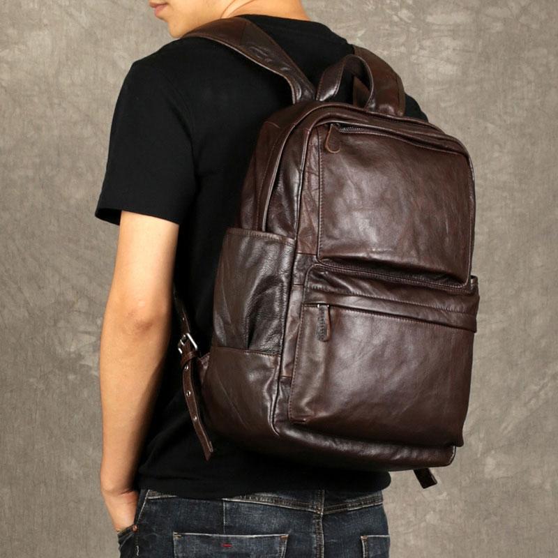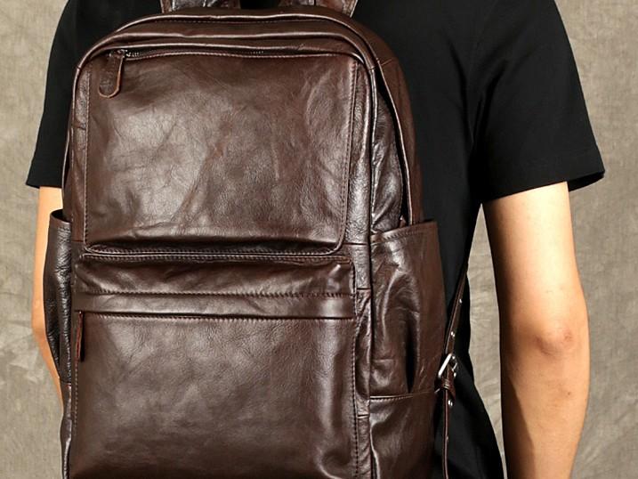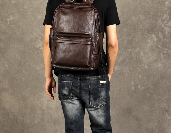 Design: Genuine Leather Mens Cool Backpack Sling Bag Large Coffee Travel Bag Hiking Bag for men