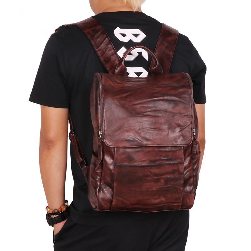 Design: Handmade Cool Leather Men's Backpack Travel Backpack 14inch Computer Backpack For Men