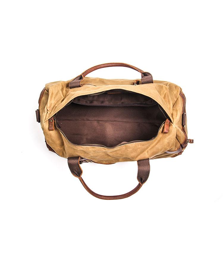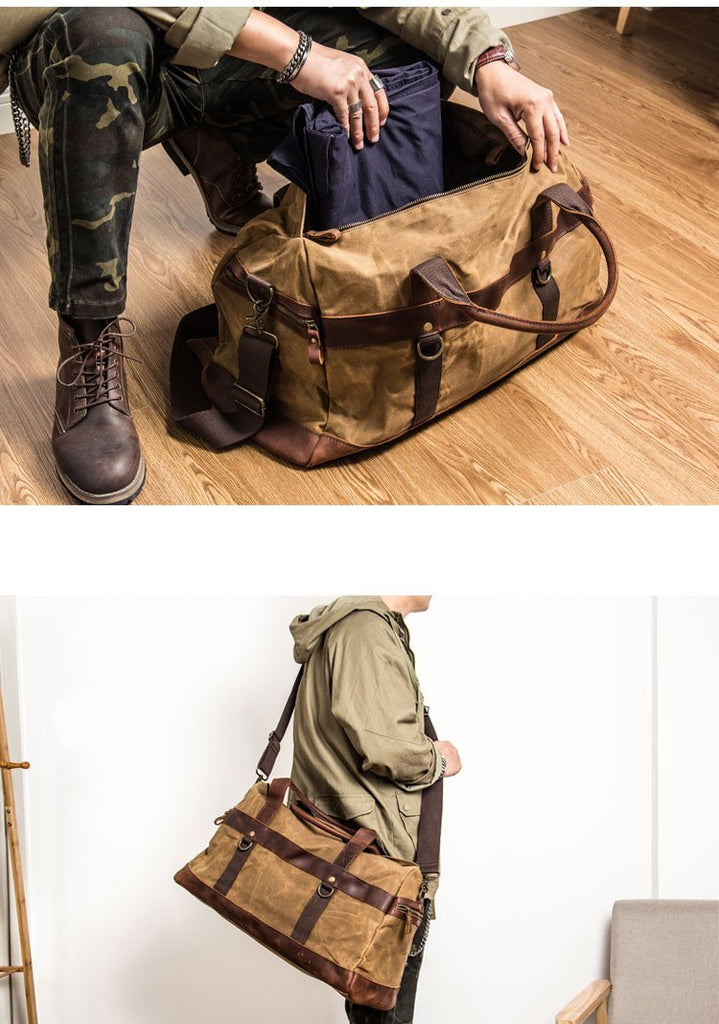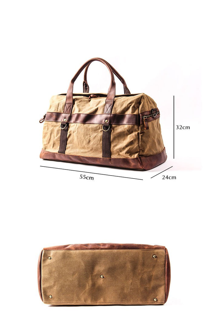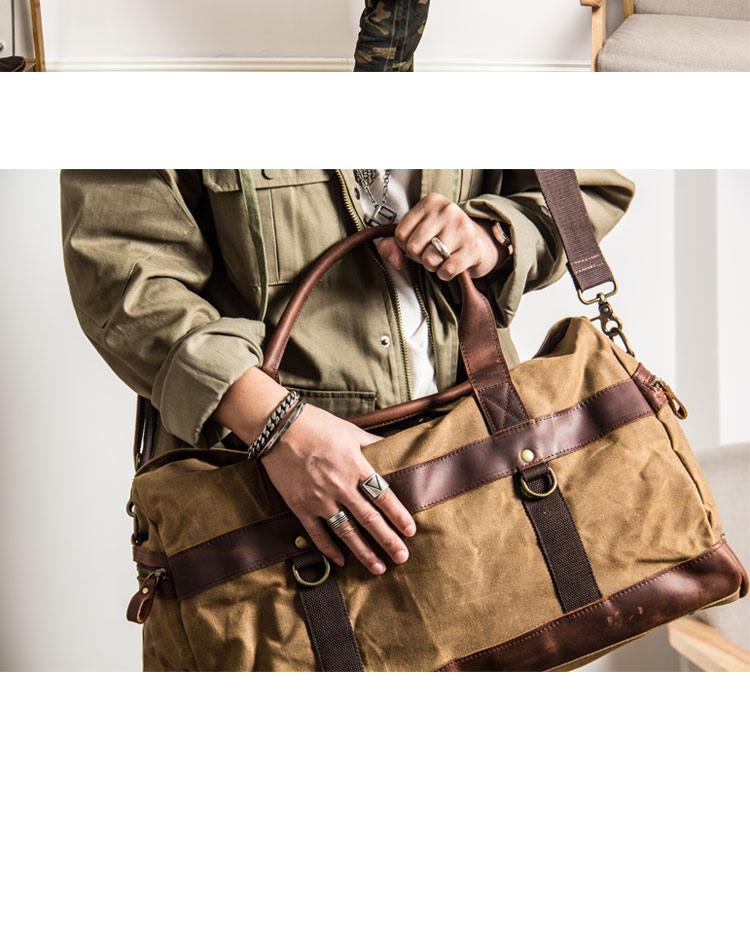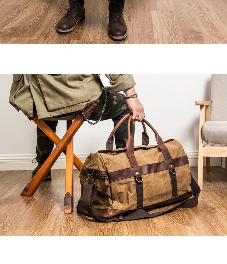 Design: Khaki Waxed Canvas Mens Waterproof Large Travel Bag Luggage Bag Handbag for Men