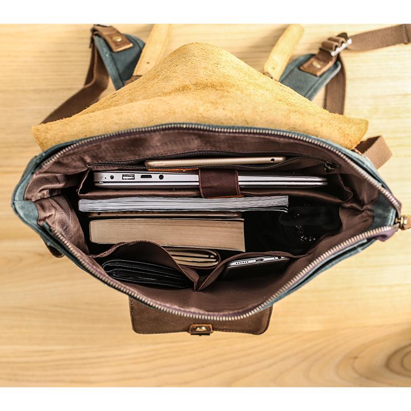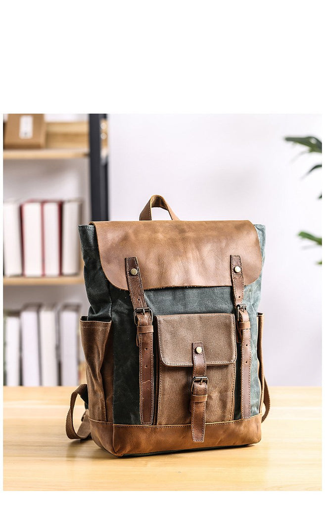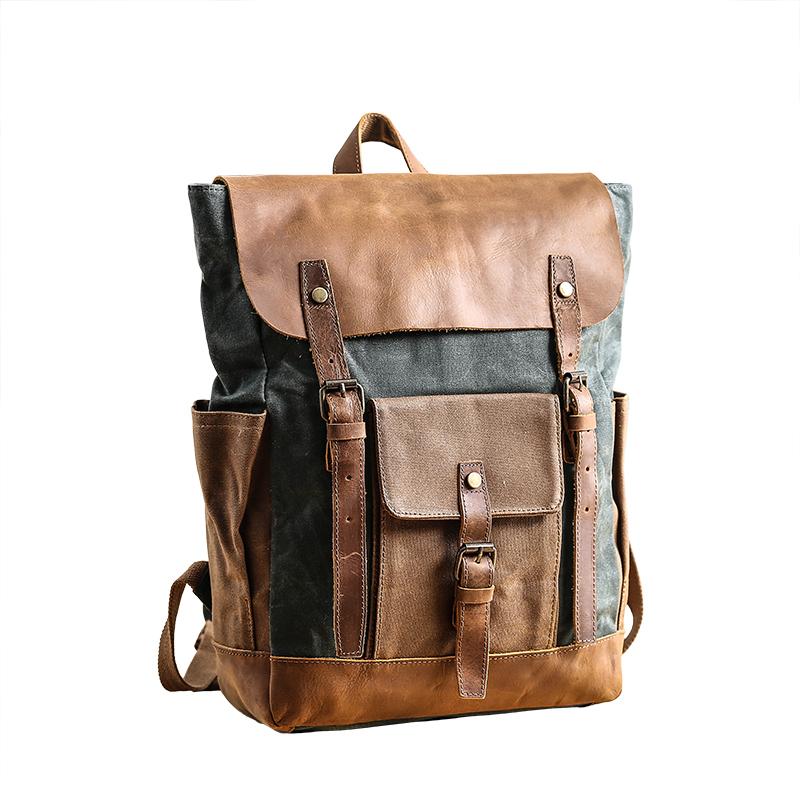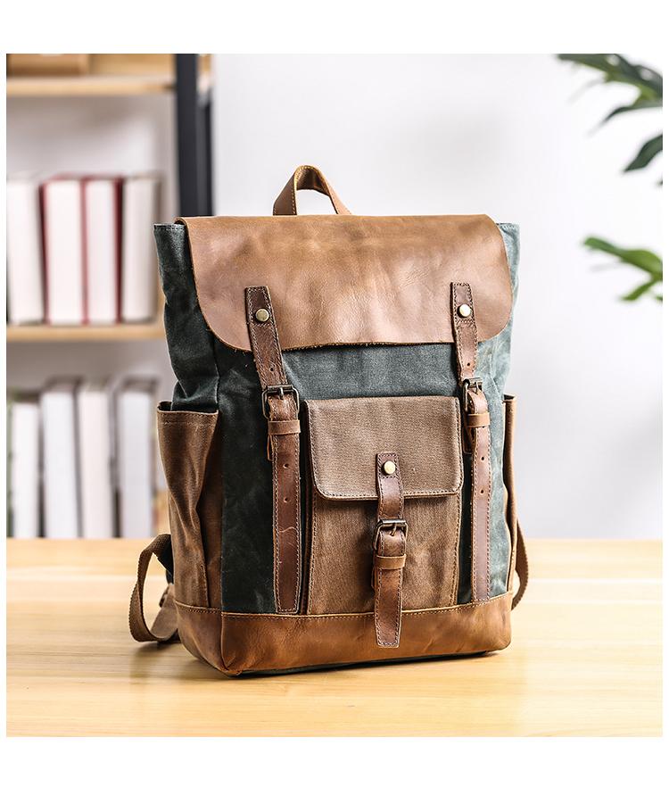 Style: Lake Green Waxed Canvas Mens Large Computer Bag College Backpack Student Bag for Men