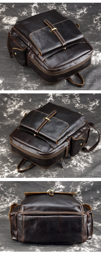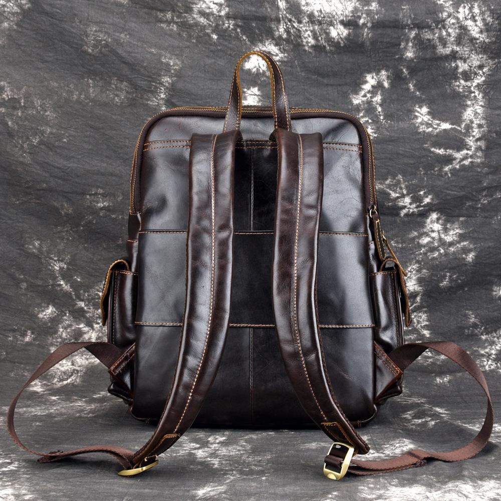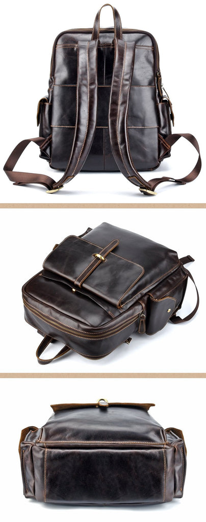 Design: Oil Waxed Leather Mens Laptop Backpack School Backpack Travel Backpack for Men