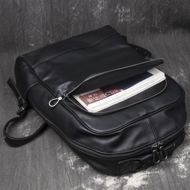 Design: Cool Black Leather Mens Backpacks 15inch Laptop Backpacks School Backpack for MenOverview: