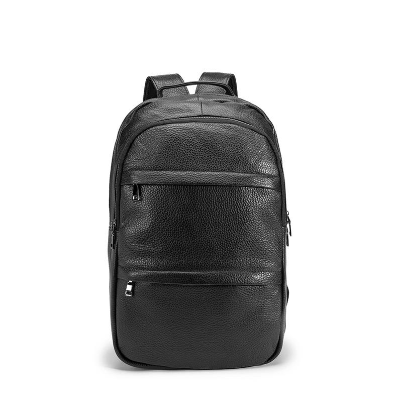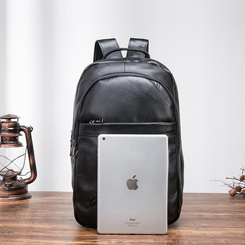 Black Mens Leather College Backpack Laptop Backpack Black Travel Backpack for Men