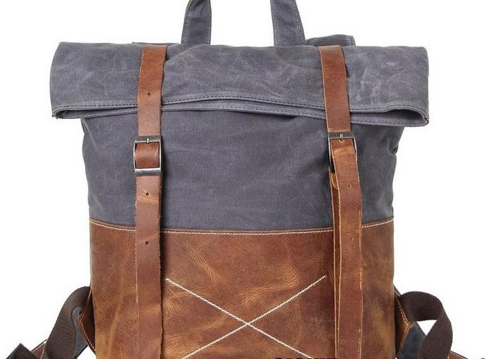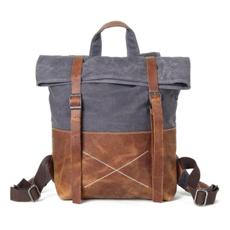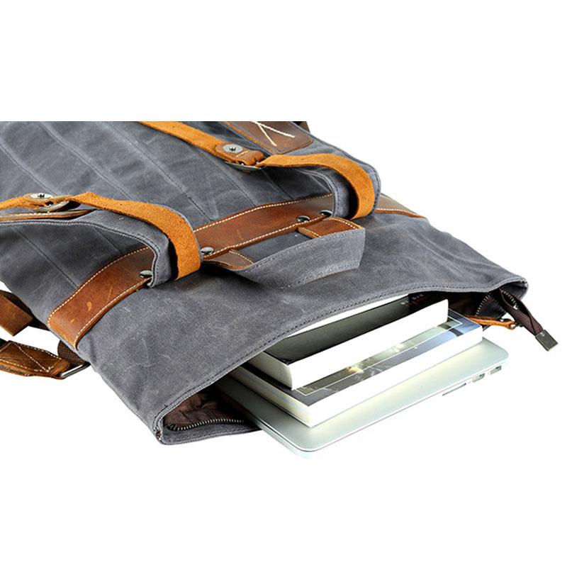 Waxed Canvas Leather Backpack for Men Gray Waxed Canvas Backpack Waterproof Backpack