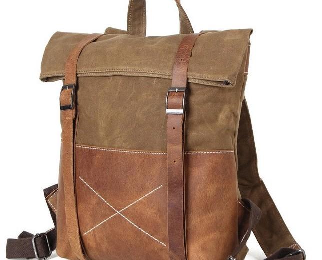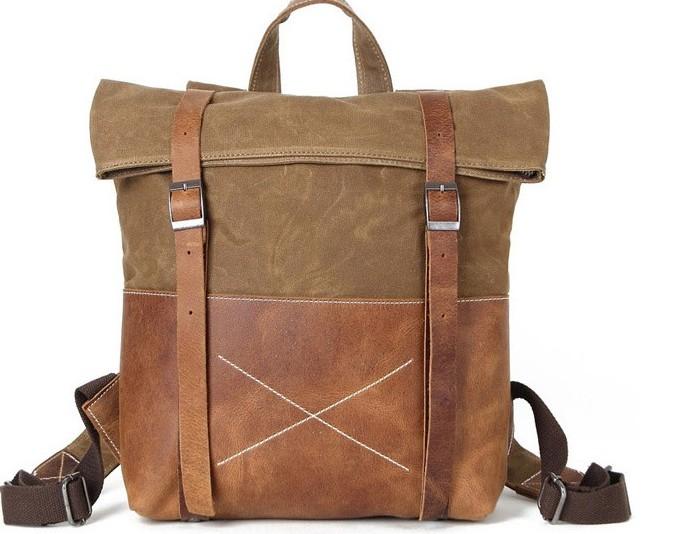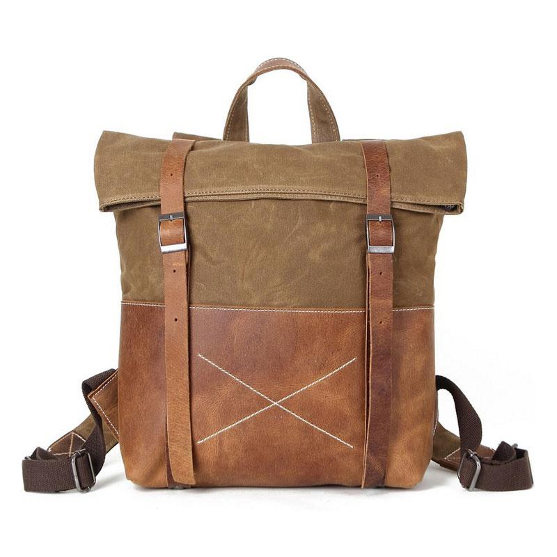 Style: Cool Waxed Canvas Leather Backpack for Men Waxed Canvas Backpack Waterproof Backpack