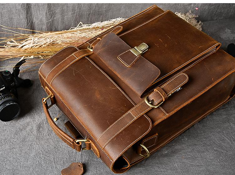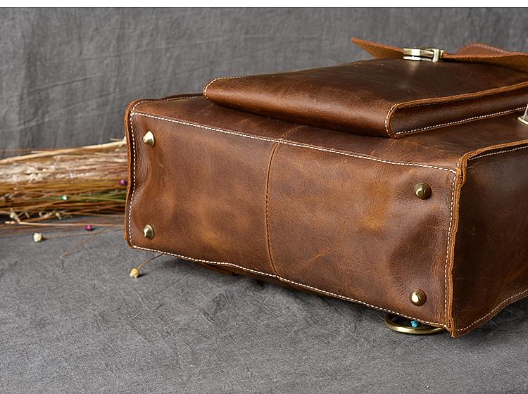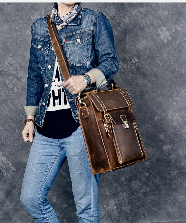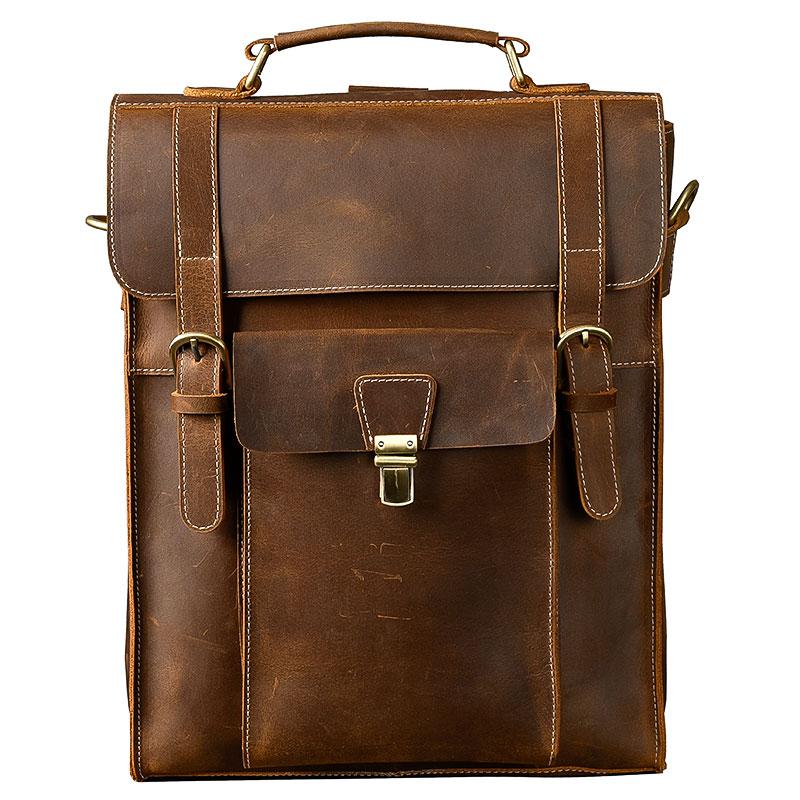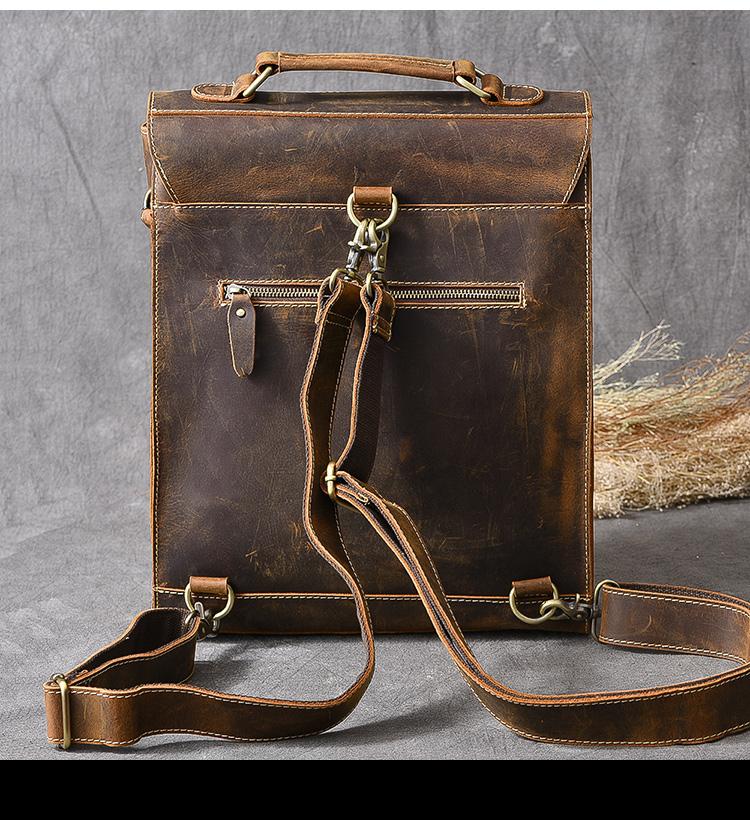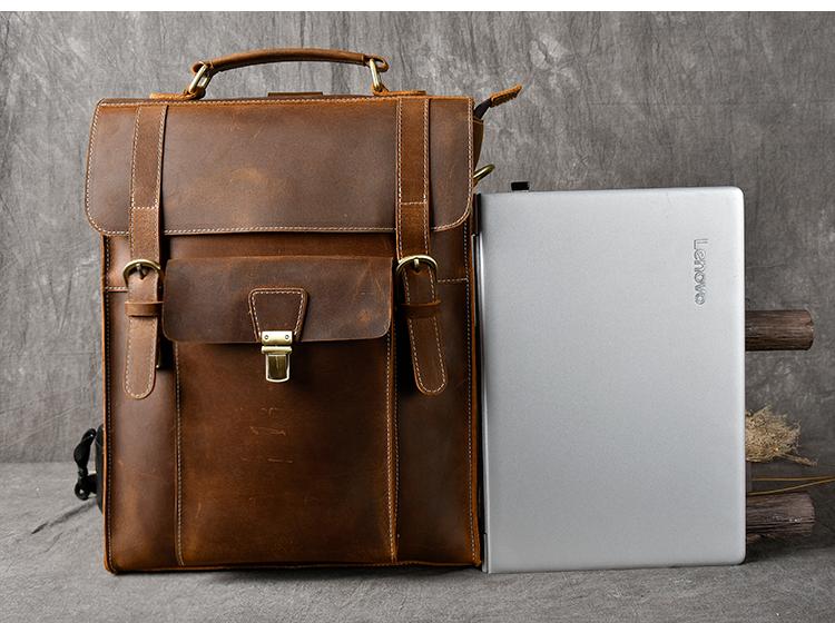 Design: Waxed Canvas Leather Mens 14" Brown Computer Backpack Dark Brown Travel Backpack College Backpack for Men